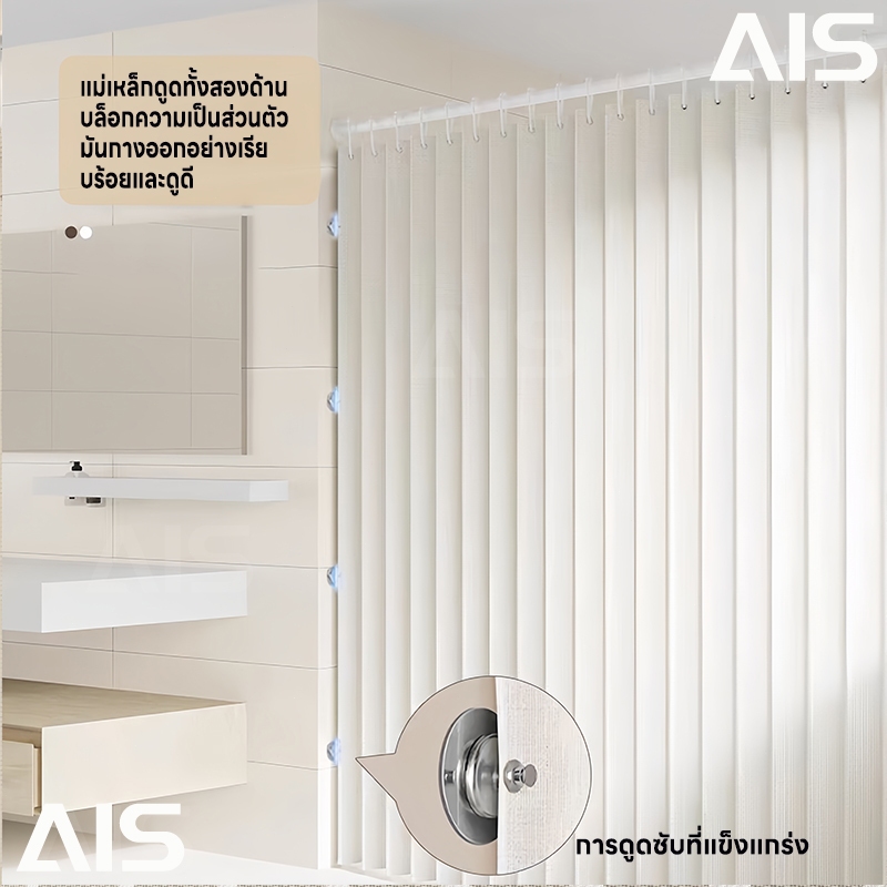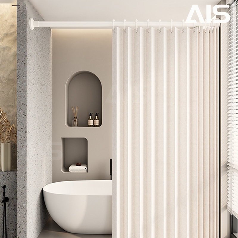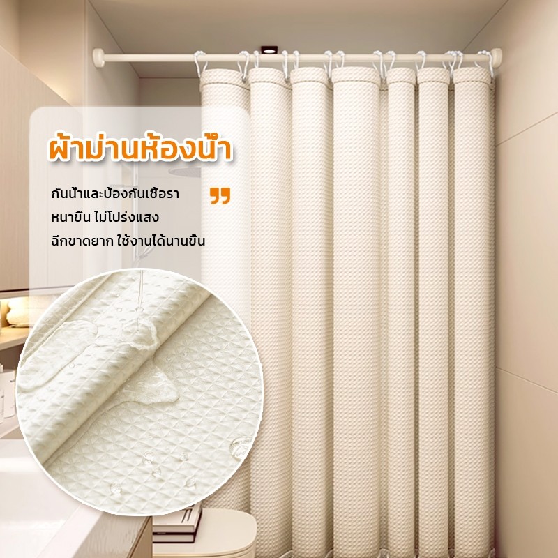 ม่านอาบน้ำ ด้วยก้านยืดไสลด์ ผ้าม่านห้องน้ำห้องอาบน้ำ พับได้ กันน้ำ Shower Curtain ผ้าม่านห้องน้ำฉากกั้นห้องน้ำ