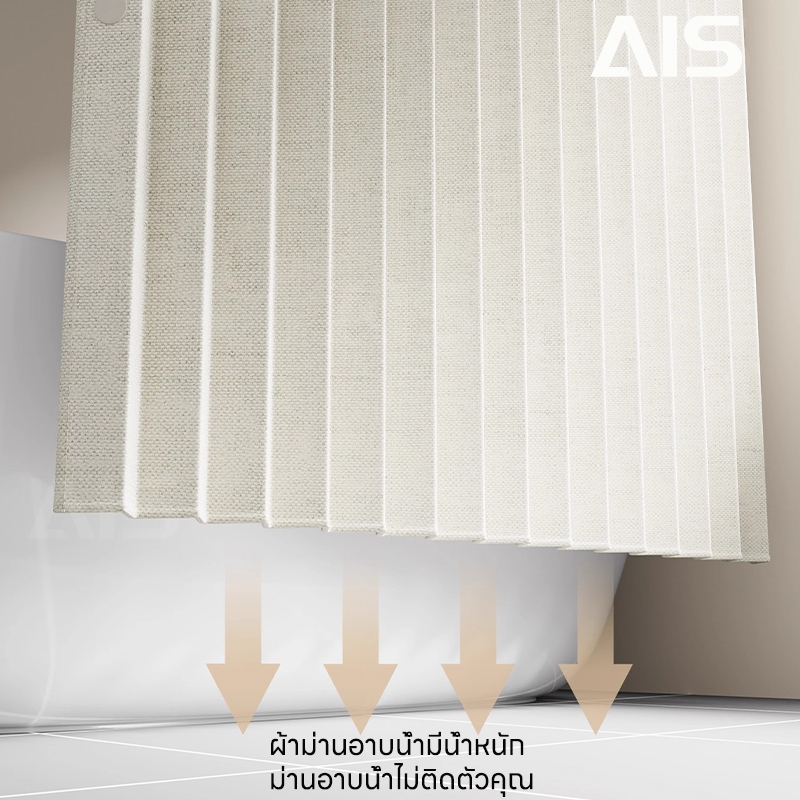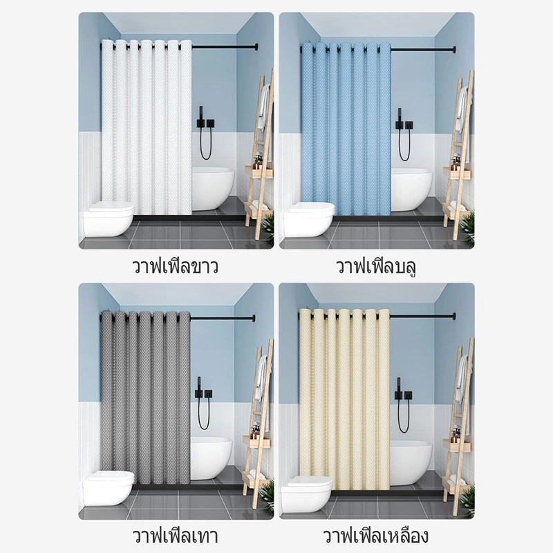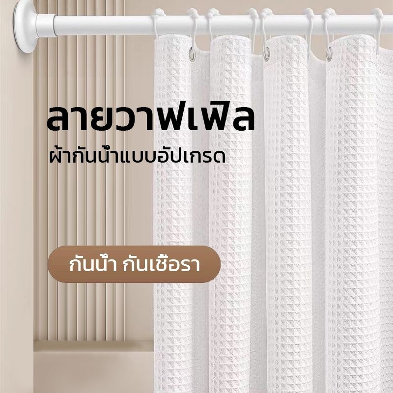 ม่านห้องน้ำลายวาฟเฟิล ผ้าหนาน้ำหนัก กันน้ำ กันเชื้อรา ติดตั้งง่าย แข็งแรงทนทาน เหมาะสำหรับห้องน้ำ