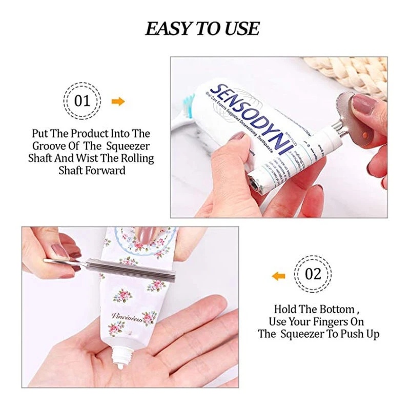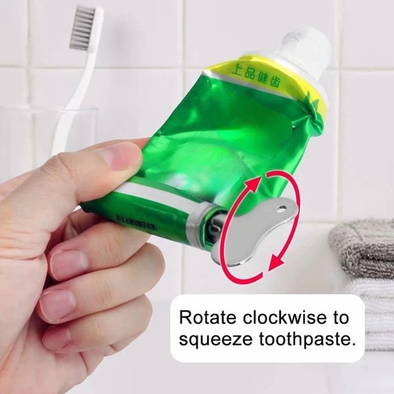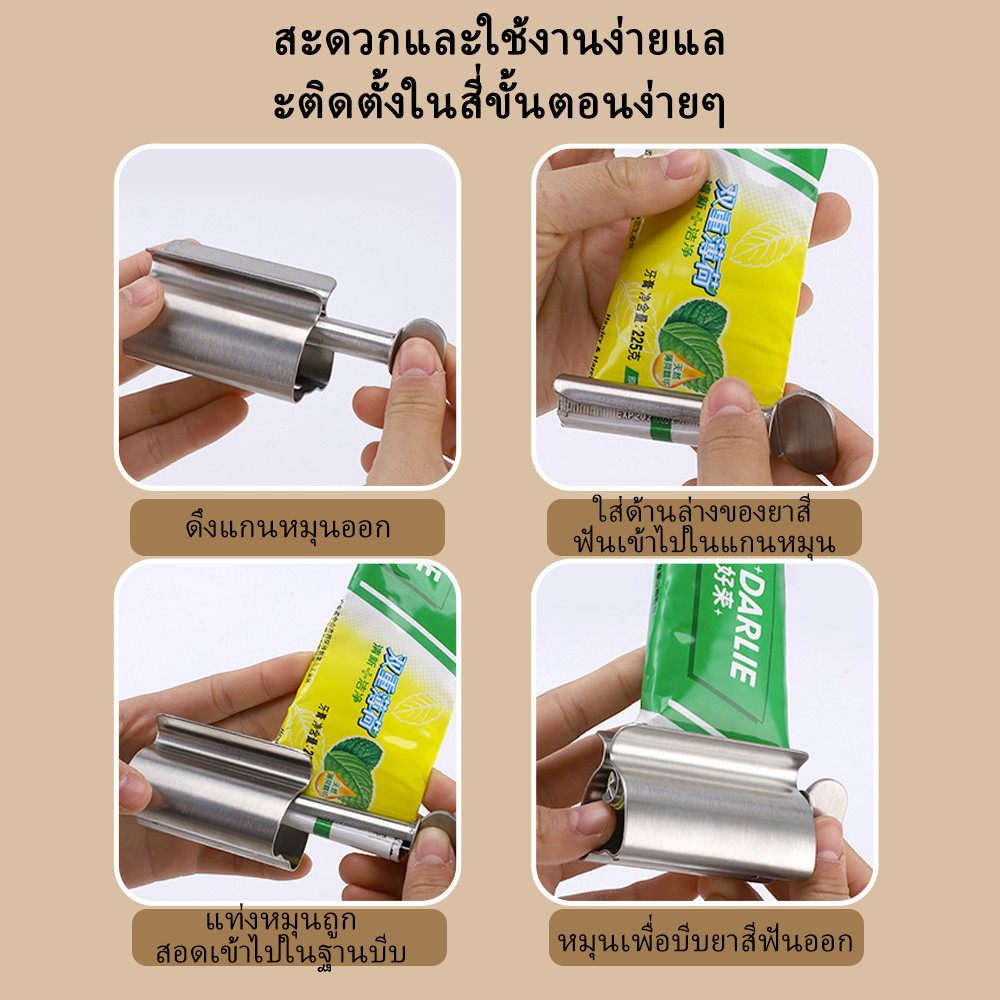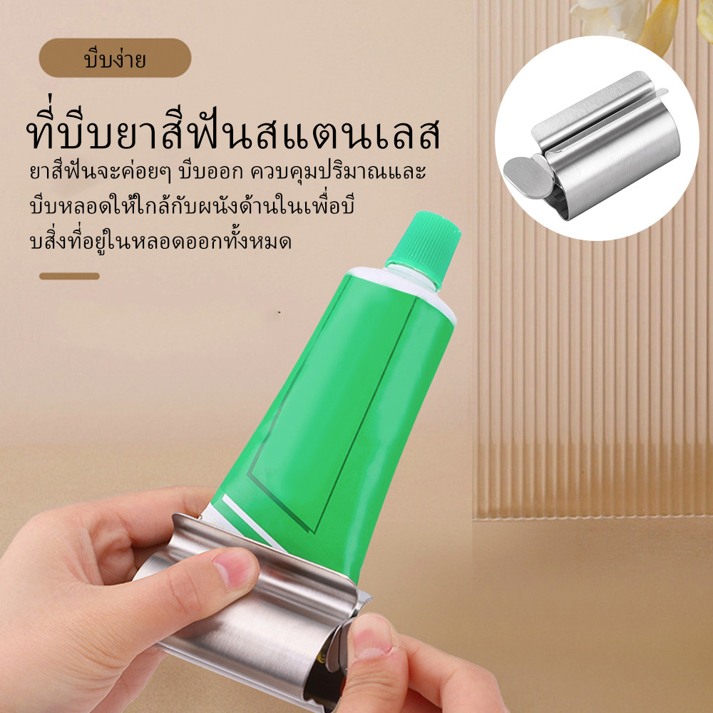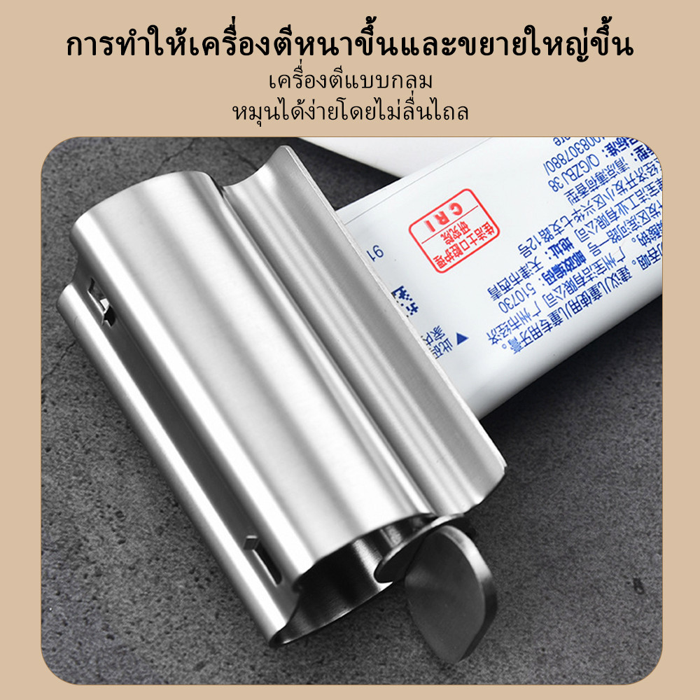 เครื่องบีบยาสีฟัน สเตนเลส อเนกประสงค์ แบบพกพา หมุนได้ แมนนวล ทําความสะอาดผิวหน้า บีบได้ อุปกรณ์จัดระเบียบห้องน้ํา