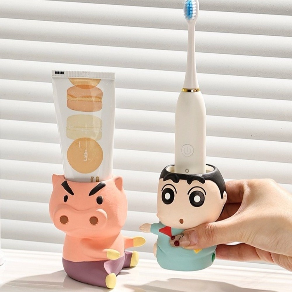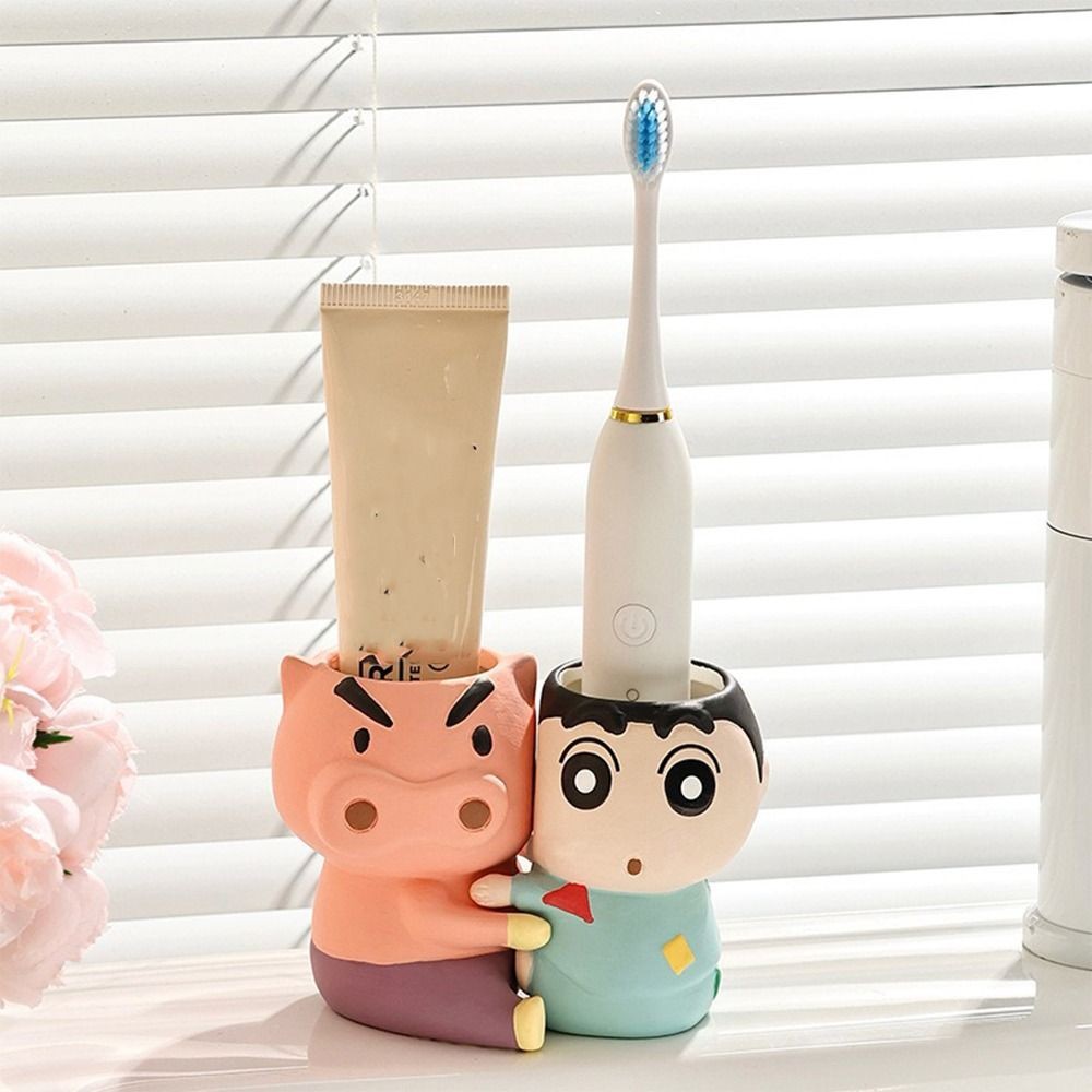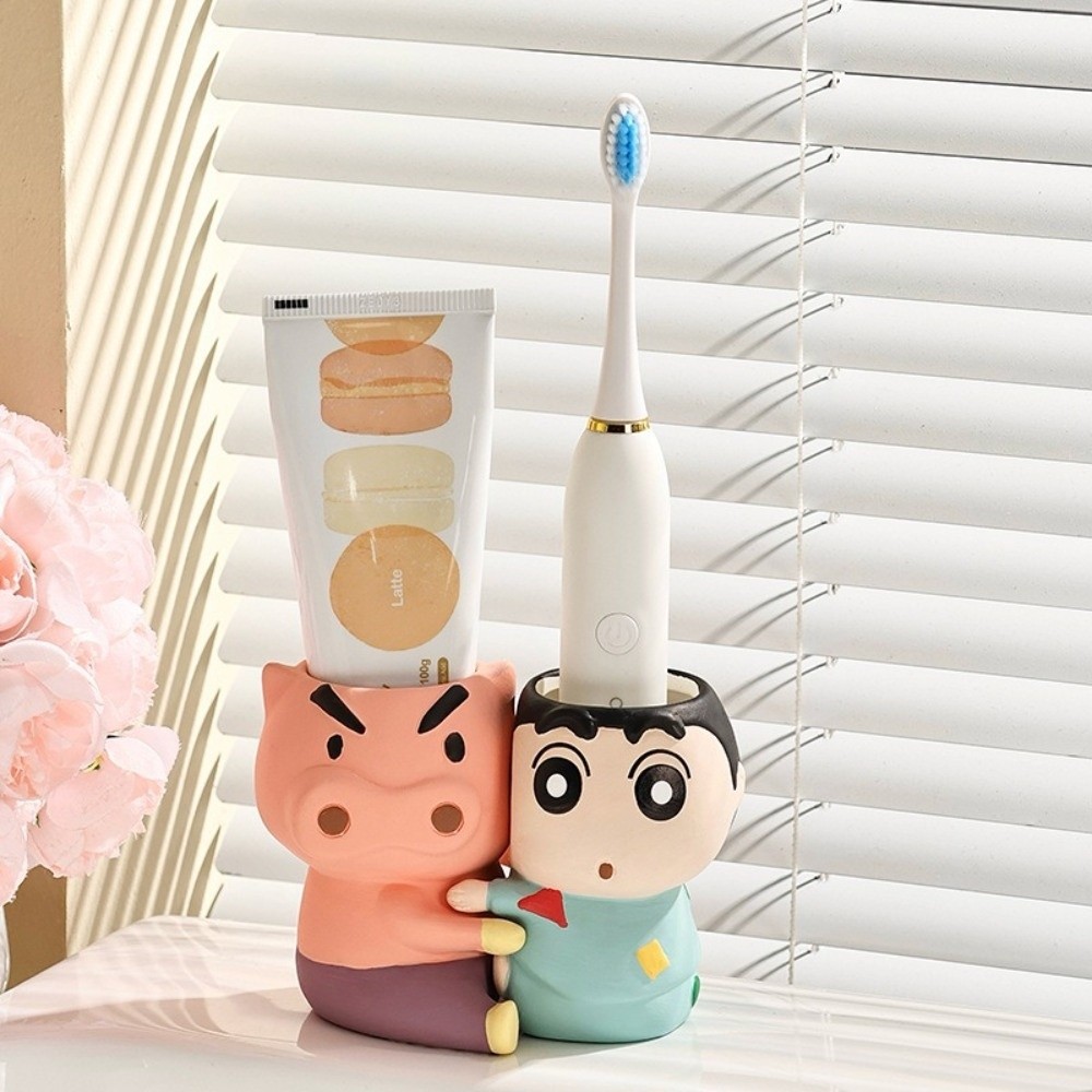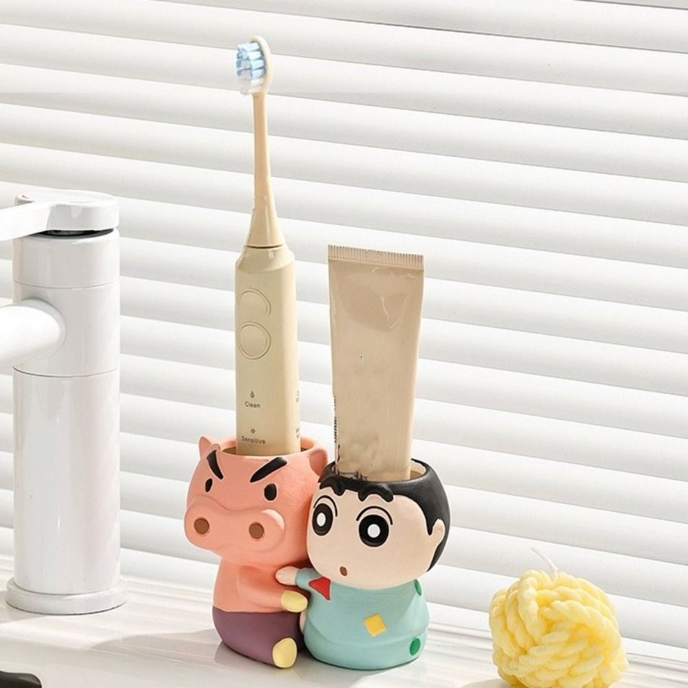 หรูหรา ชั้นวางแปรงสีฟัน เครยอนชินจัง,ชั้นเก็บแปรงสีฟันอะนิเมะกันน้ําเซรามิก,ออแกไนเซอร์ห้องน้ําประหยัดพื้นที่ลื่นคู่ชั้นวางแปรงสีฟันห้องน้ําอ่าง