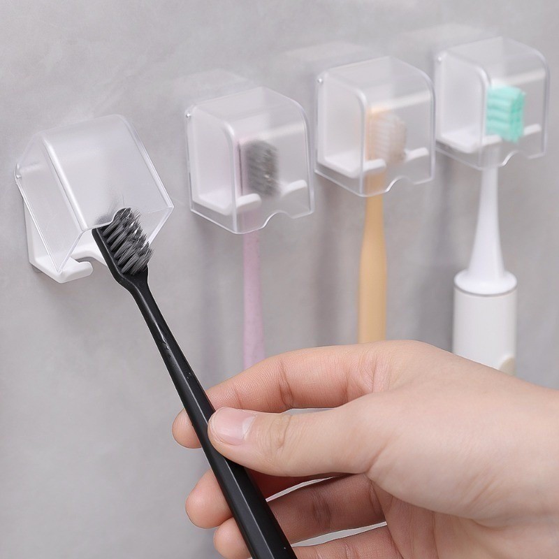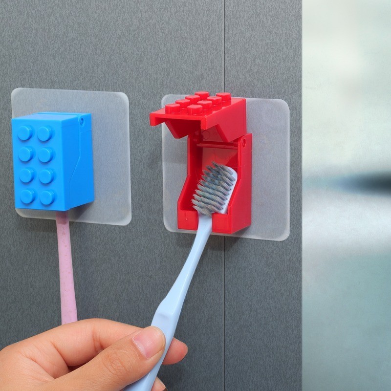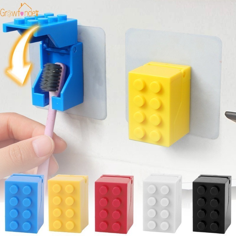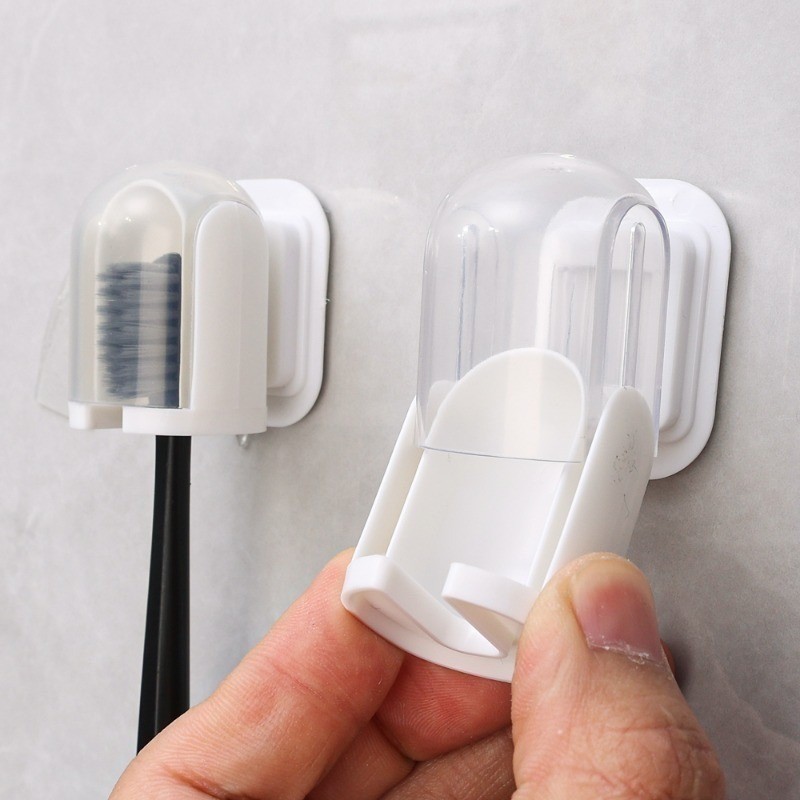 อาคารบล็อกรูปร่างผู้ถือแปรงสีฟันหมัดฟรีติดผนังชั้นวางแปรงสีฟันฝาครอบกันฝุ่นห้องน้ําการจัดเก็บเครื่องมือ