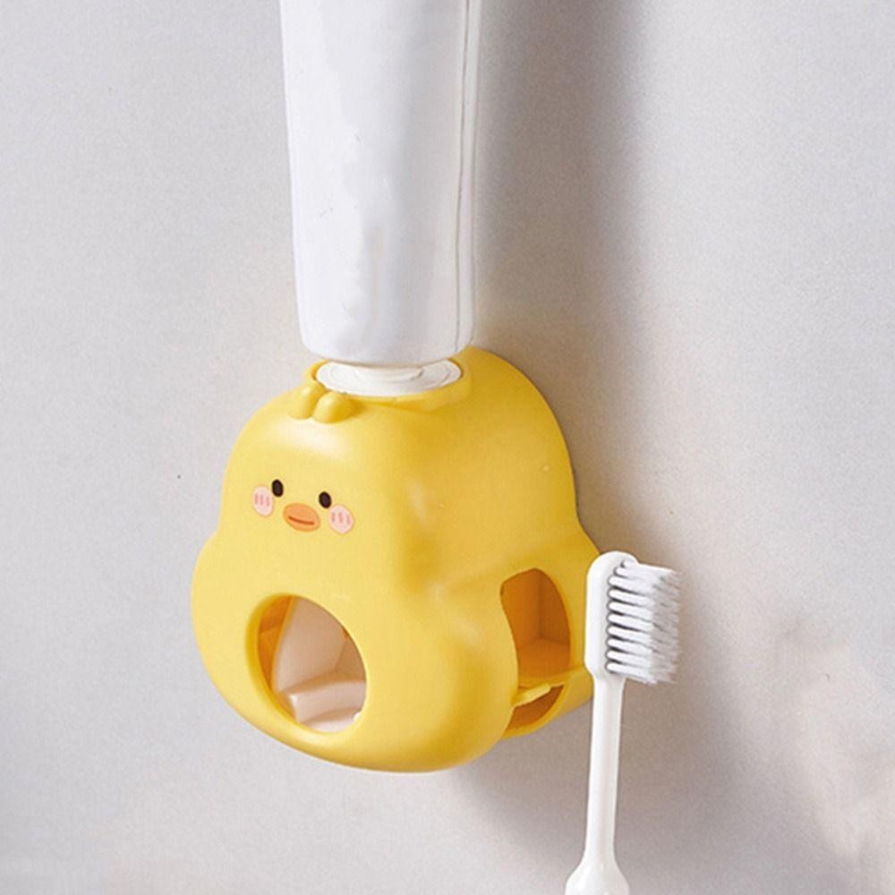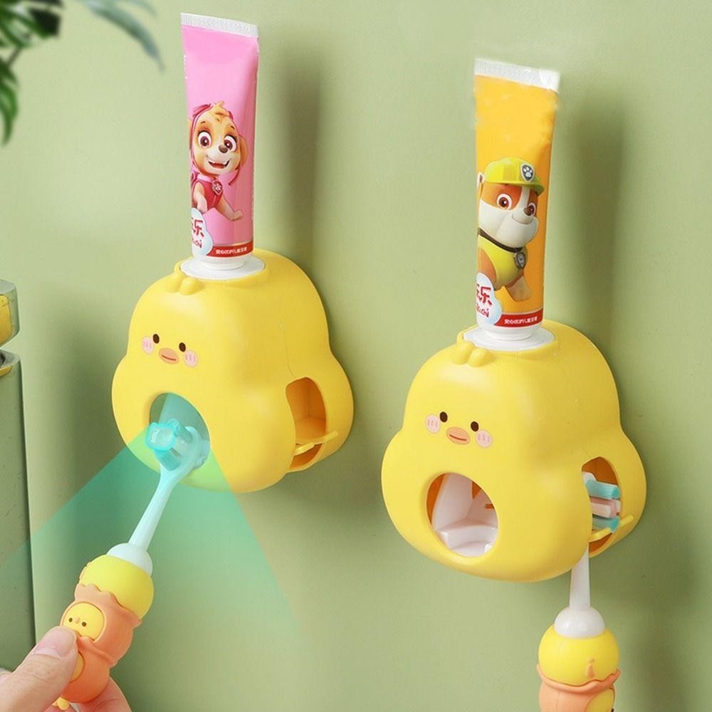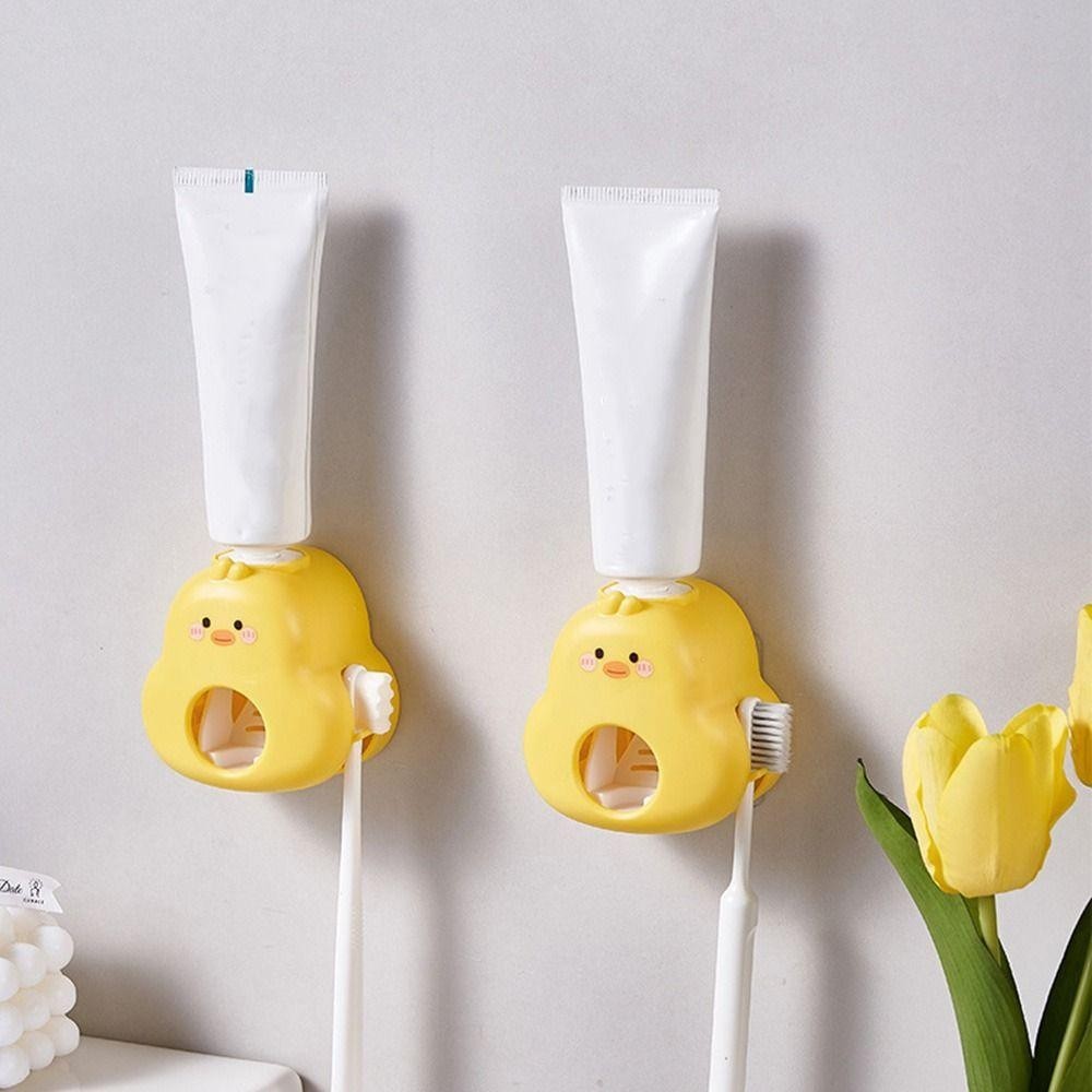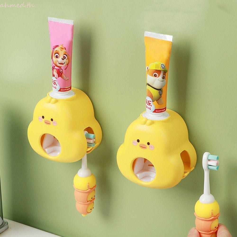 อาเมด เครื่องจ่ายยาสีฟันเป็ดสีเหลือง,ที่บีบยาสีฟันการ์ตูนพลาสติก,ติดผนังที่ใช้งานได้จริงไม่ต้องเจาะรูที่ใส่แปรงสีฟันสําหรับห้องน้ํา