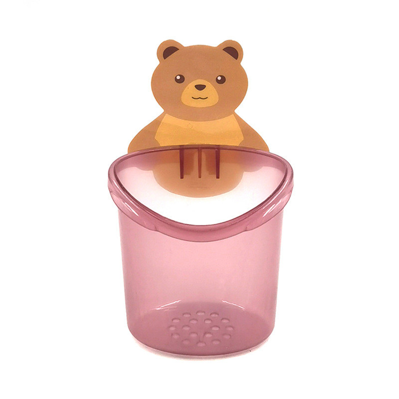 หมีแปรงสีฟันถ้วยผู้ถือแปรงสีฟันชั้นเก็บห้องน้ําพรุนฟรีน้ํายาบ้วนปากถ้วยยาสีฟันติดผู้ถือน่ารักรูปร่างปฏิบัติเครื่องมือจัดส่งอย่างรวดเ