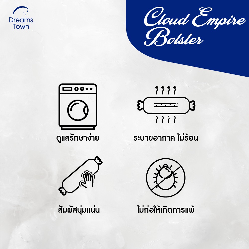 [แพ็คคู่] Dreamstown หมอนข้าง ใยฟู ให้สัมผัสนุ่มสบาย เกรดพรีเมี่ยม ผ้าคลุมไมโครไฟเบอร์ Polyester Bolster