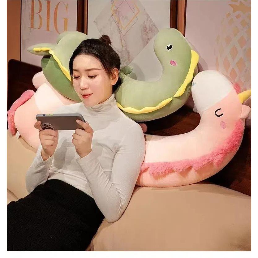 LHL BOUTIQUE หมอนรองคอลมแมวน่ารักนอนป้องกันคอรูปตัวยูโยนหมอนสาวโซฟาเบาะข้างเตียง