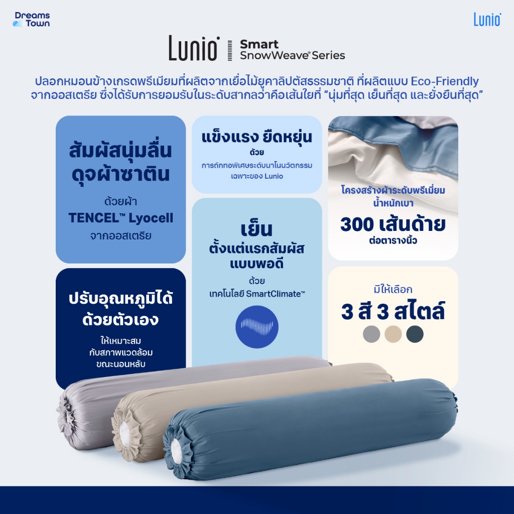 Lunio Smart SnowWeave Bloster Case ปลอกหมอนข้าง ผลิตจากเส้นใย TENCEL™ สัมผัสนุ่ม เย็น ไม่ระคายผิว 2ชิ้น มีให้เลือก 3สี