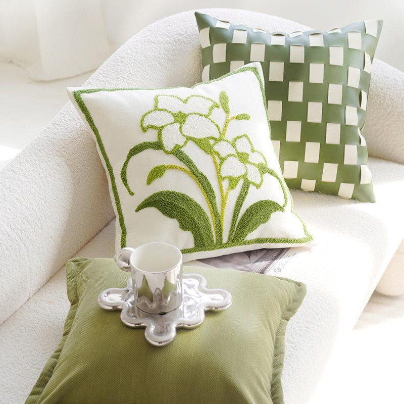 โยนหมอน น่ารักสีเขียวครีมสไตล์ปลอกหมอนห้องนั่งเล่นโซฟาหมอนพนักพิงสีเขียวที่มีชื่อเสียงข้างเตียงอ่าวหน้าต่างเบาะ