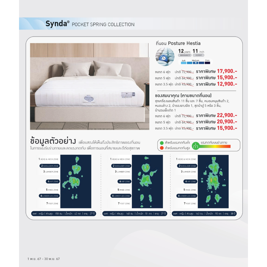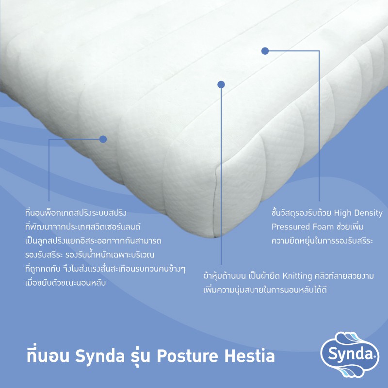 [ของแถมหมอนหนุน] Synda ที่นอนระบบพ็อกเก็ตสปริง Pocket Spring นุ่มแน่นไม่สะเทือนคนข้างๆ รุ่น Posture Hestia หนา 11 นิ้ว