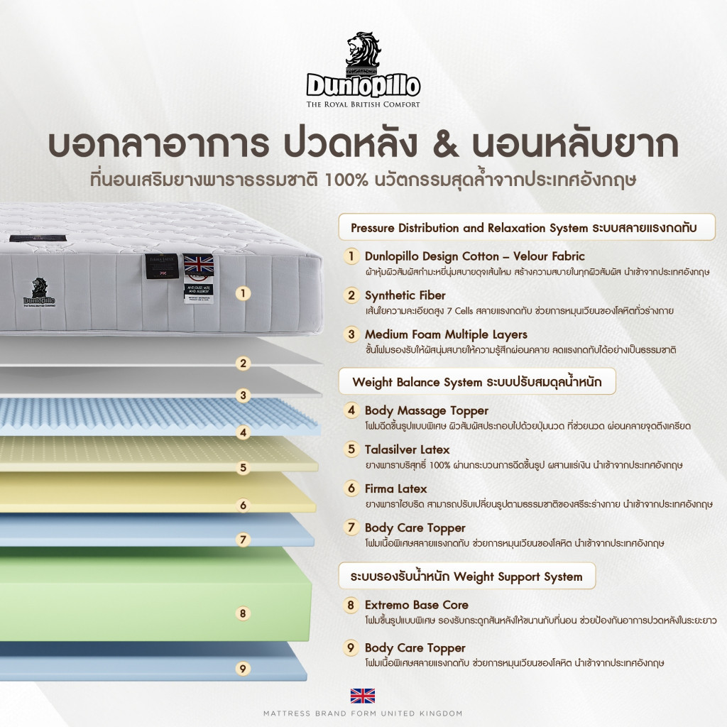 [ฟรี!ชุดผ้าปู] Dunlopillo รุ่น Wisdom ที่นอนเพื่อสุขภาพ ยางพาราแท้100% ลดอาการปวดหลัง ส่งฟรี