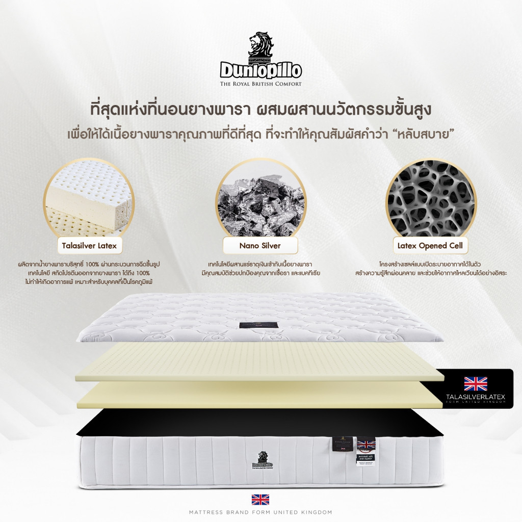 [ฟรี!ชุดผ้าปู] Dunlopillo ที่นอนยางพาราแท้ 100% นำเข้าจากประเทศอังกฤษ รุ่น Bamburgh หนา 10 นิ้ว ส่งฟรี