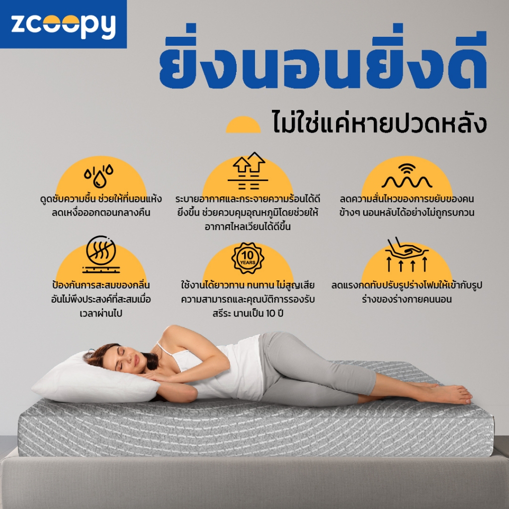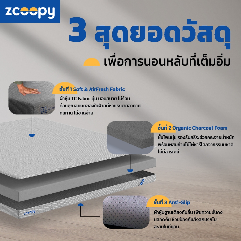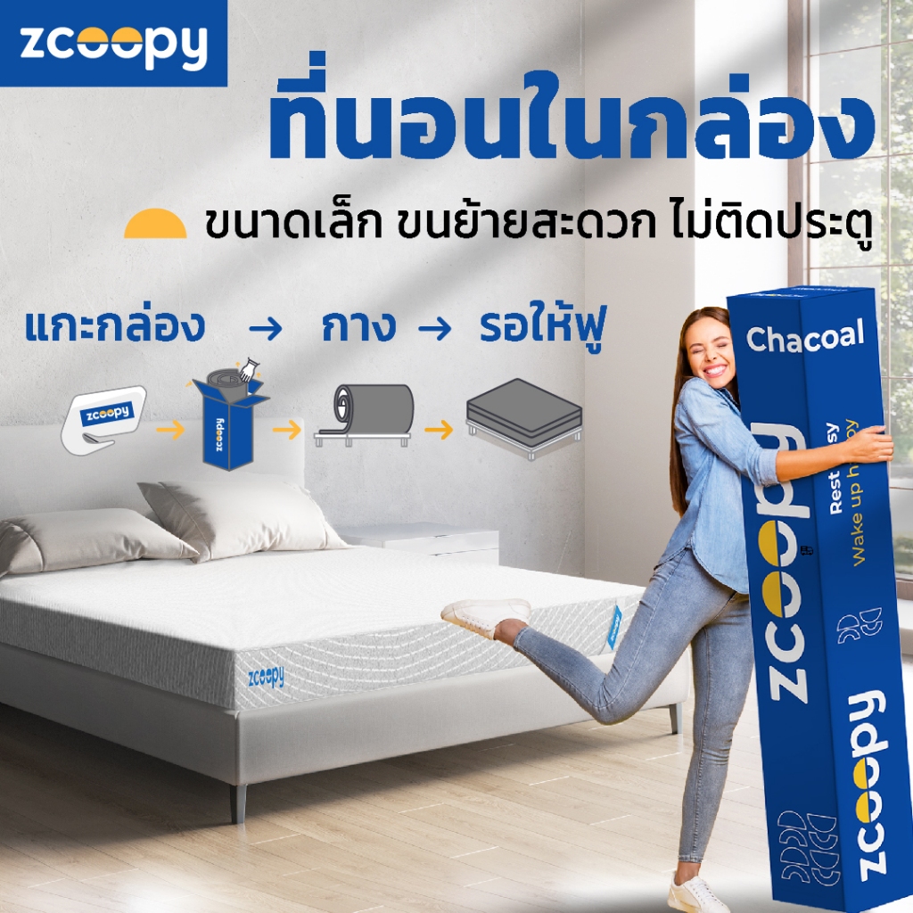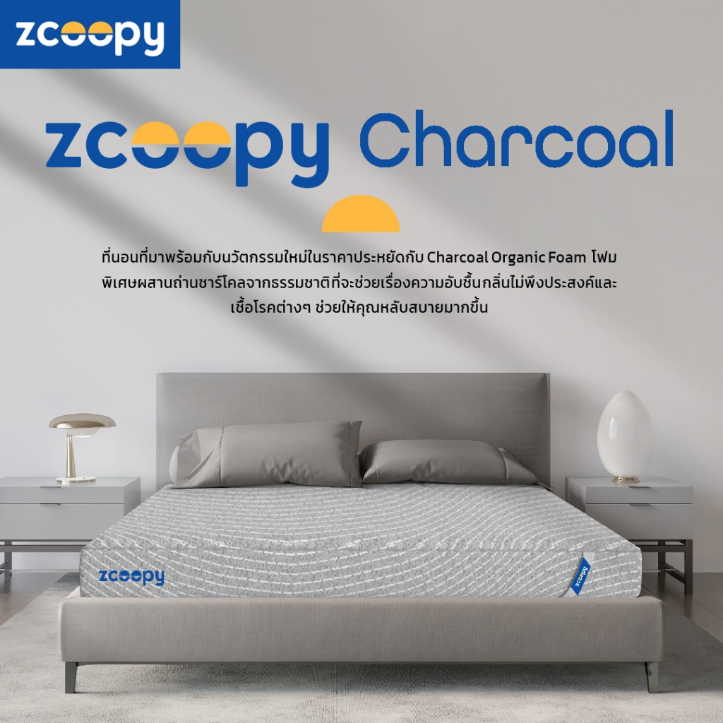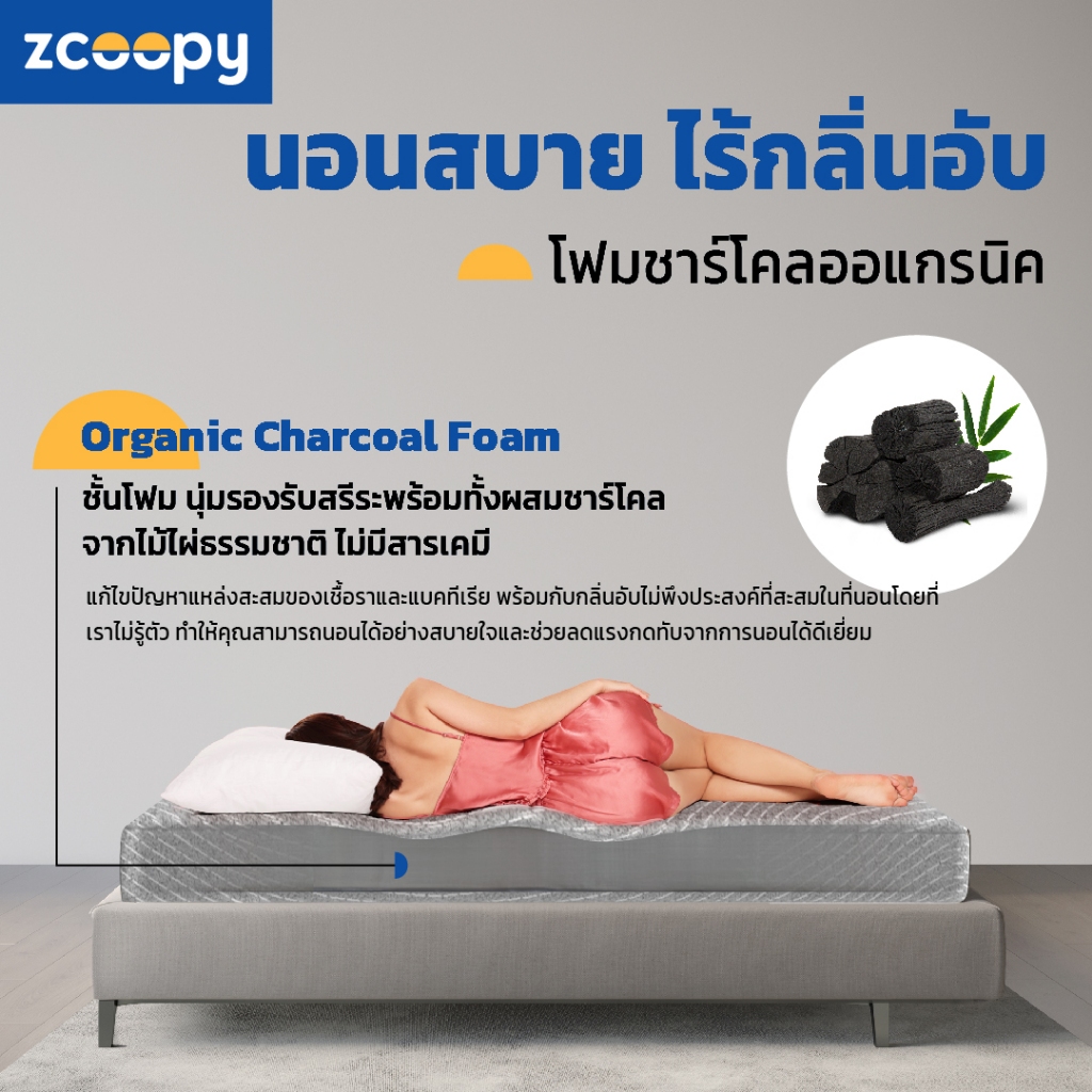 [ลดเพิ่ม 200.-] Zcoopy ที่นอน สัมผัสนุ่มแน่น ทำจากโฟมชาร์โคล ไม่อับชิ้น น้ำหนักเบา จัดส่งในกล่อง รุ่น Charcoal ขนาด6ฟุต