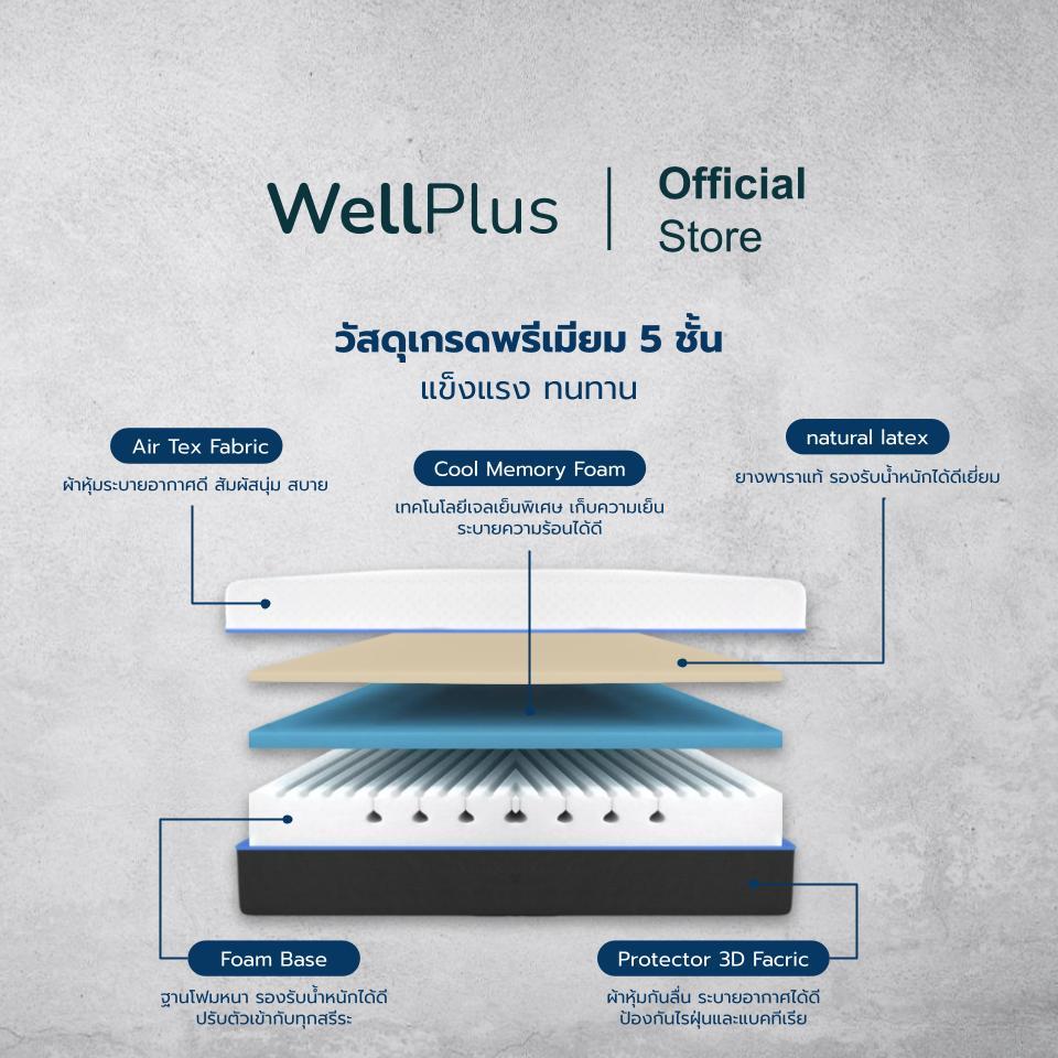 [รับประกันโครงสร้าง 10 ปี] WellPlus ที่นอนยางพาราแท้ หนา 6 นิ้ว [อัดสุญญากาศ]