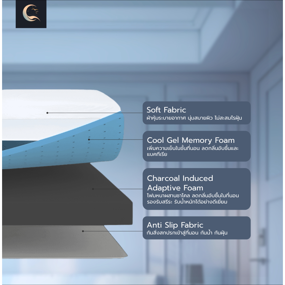 [รับประกัน 10 ปี] Dreamcity [แพ็คใส่กล่อง] ที่นอนคูลเจลเมมโมรี่โฟม รุ่น Mata เพิ่มความเย็น ลดกลิ่นอับชื้น หนา 6 นิ้ว