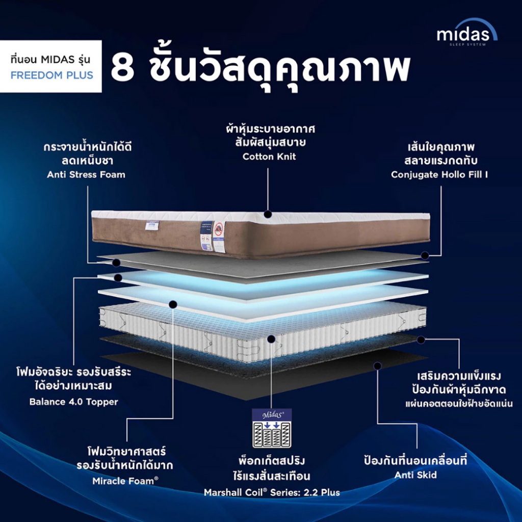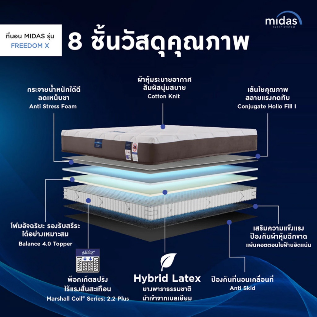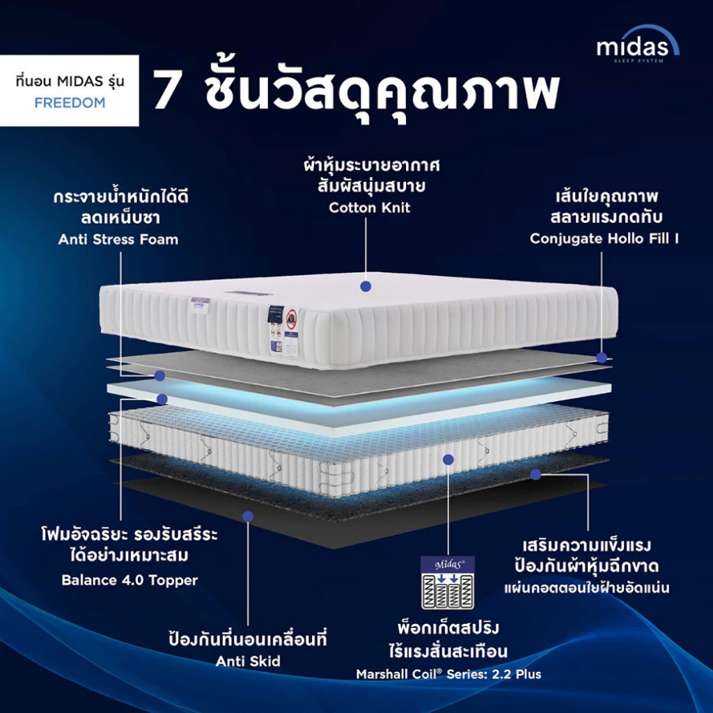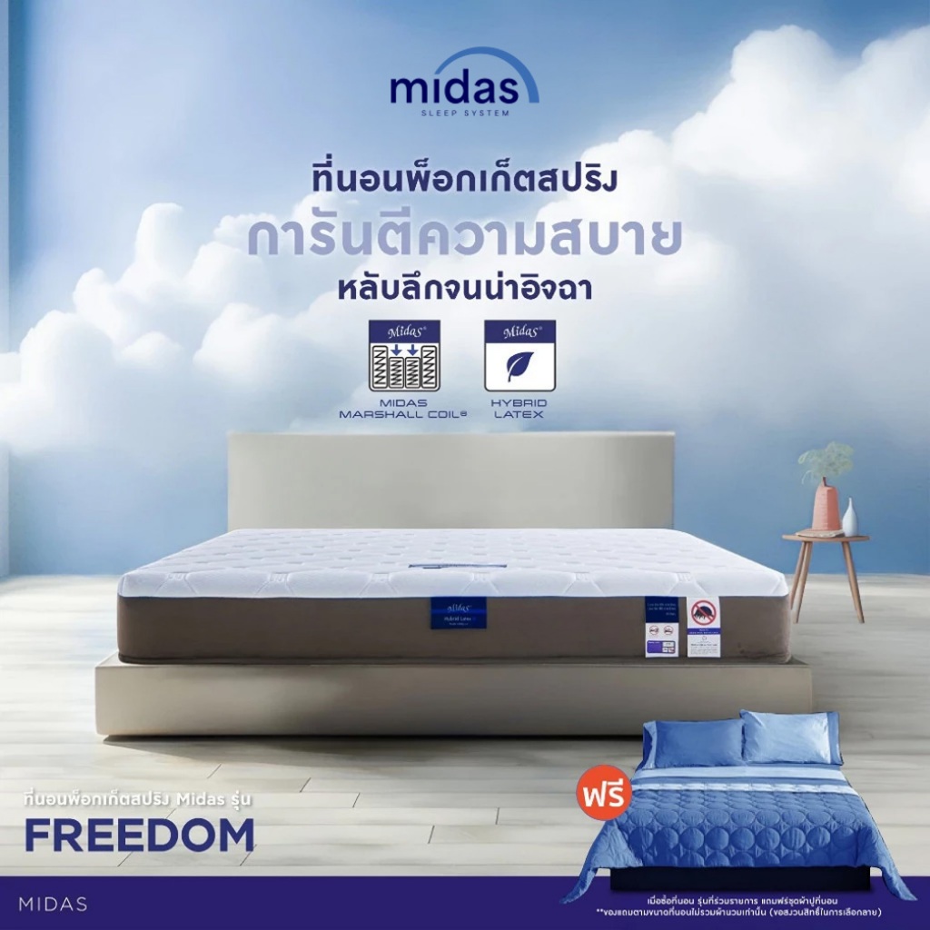 [ฟรี!ชุดผ้าปู] Midas ที่นอนพ็อกเก็ตสปริงลิขสิทธิ์จาก USA รุ่น Freedom Collection (Pocket Spring)