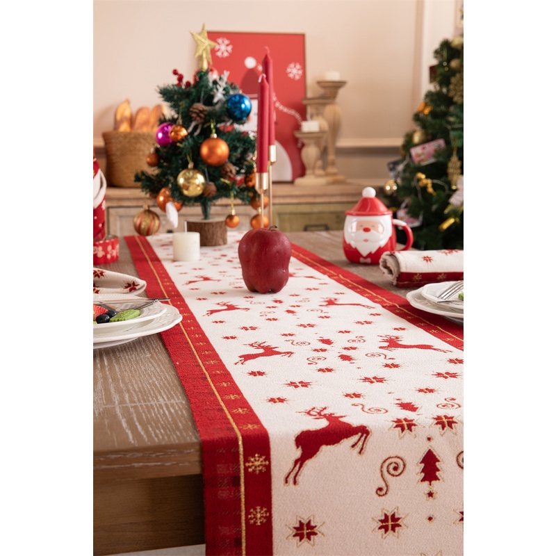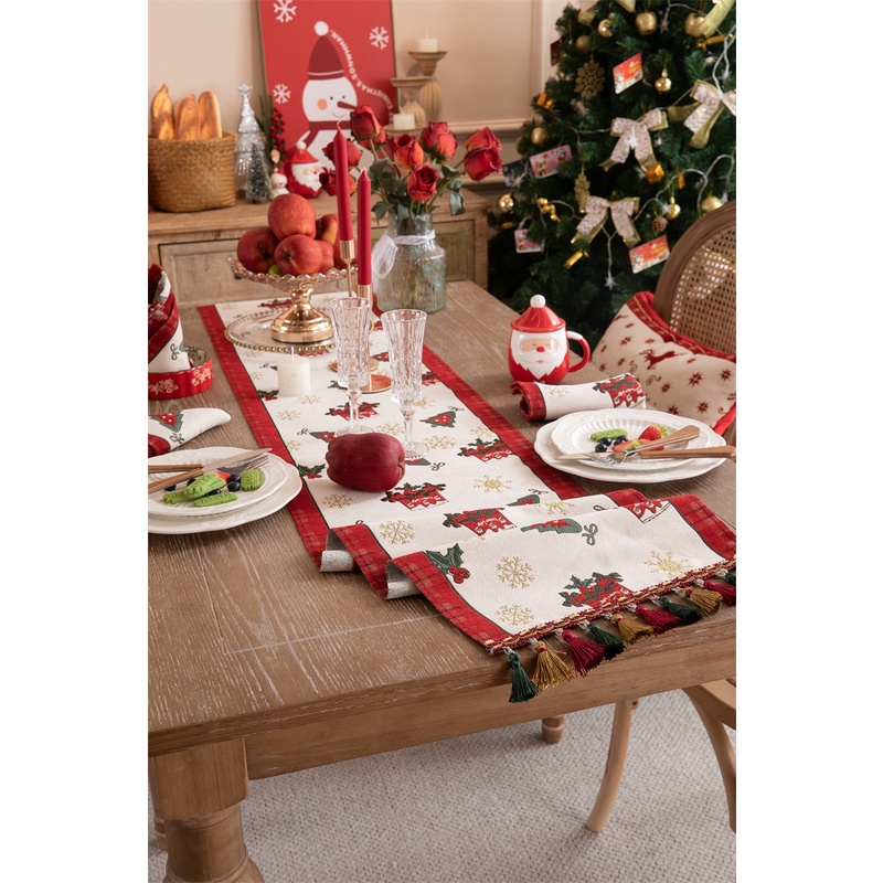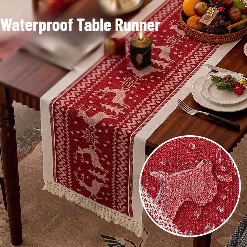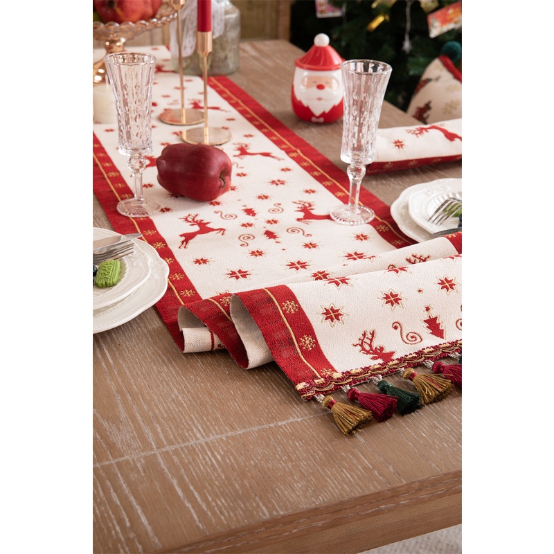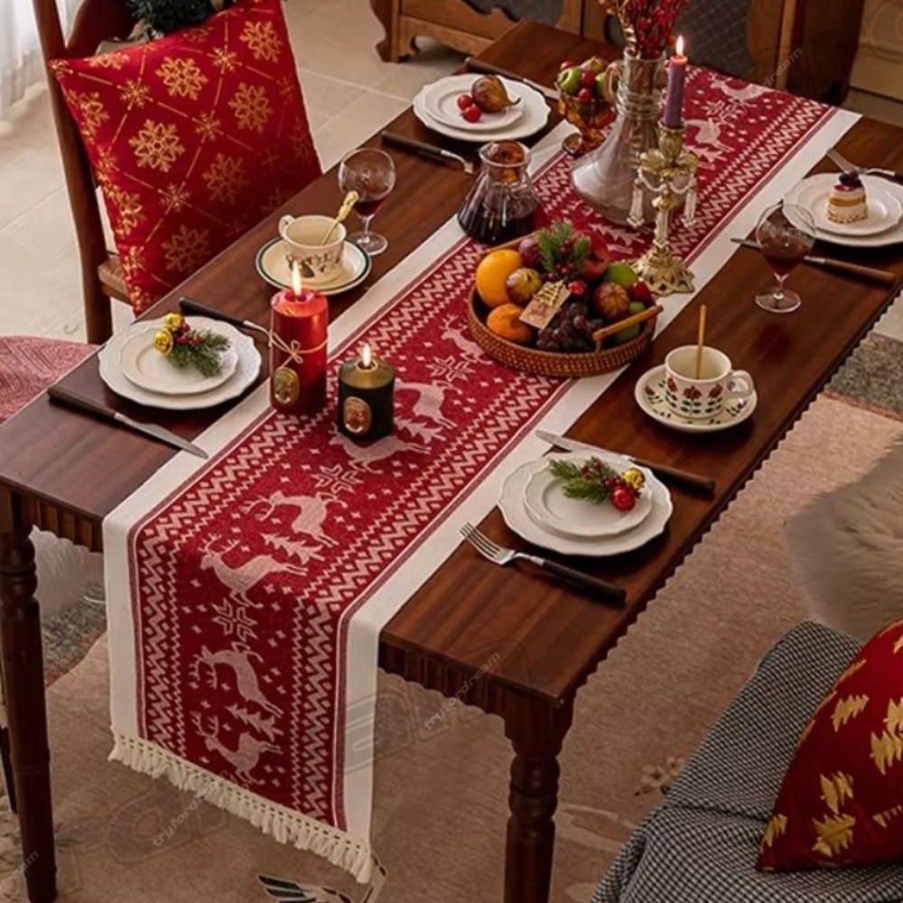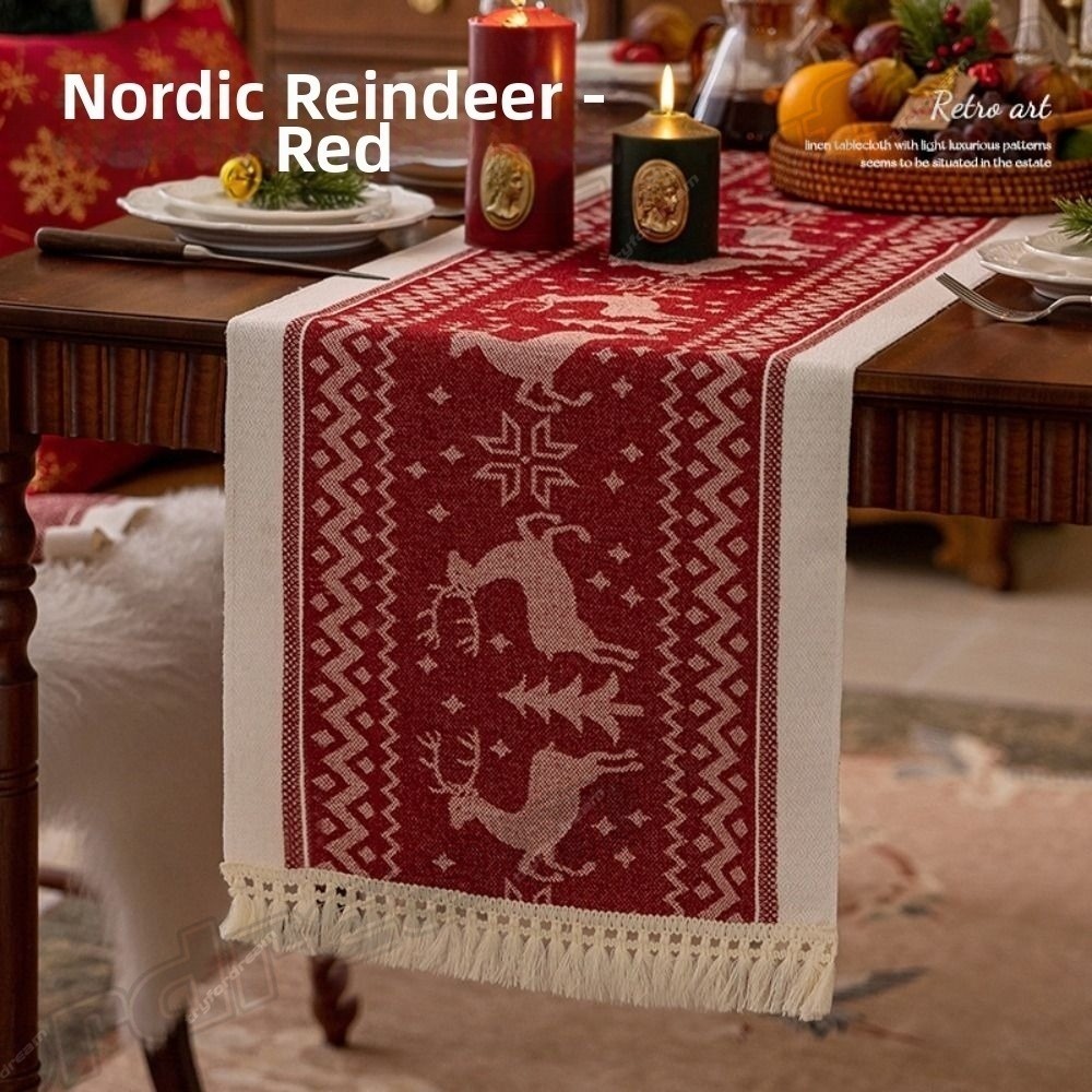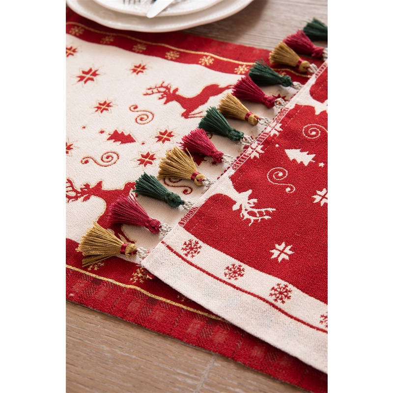 ผ้าคลุมโต๊ะทีวี ลายกวางคริสต์มาส ประดับพู่ สําหรับตกแต่งบ้าน