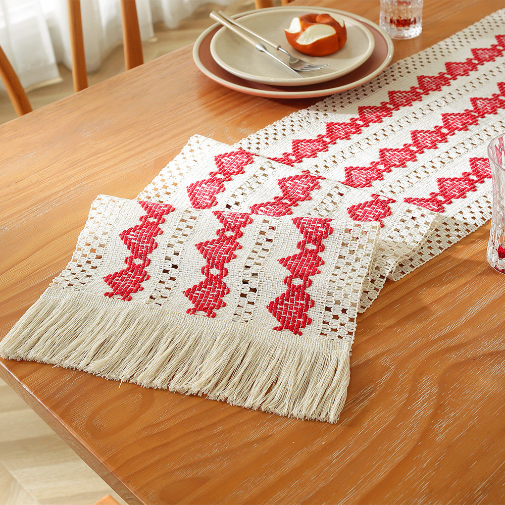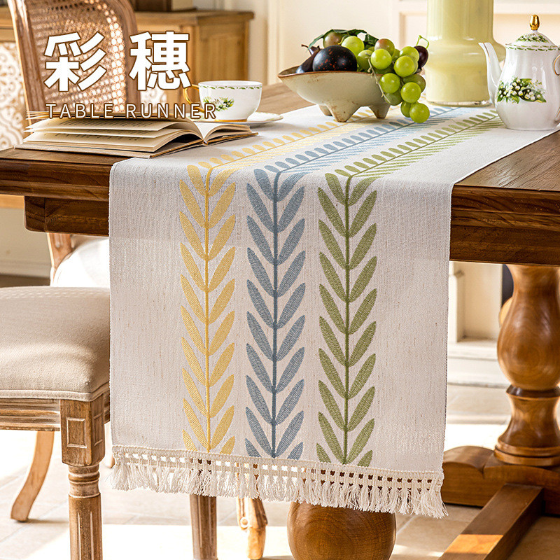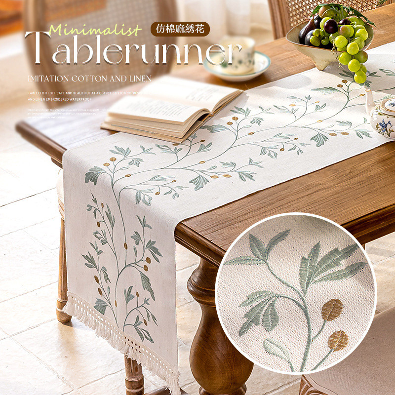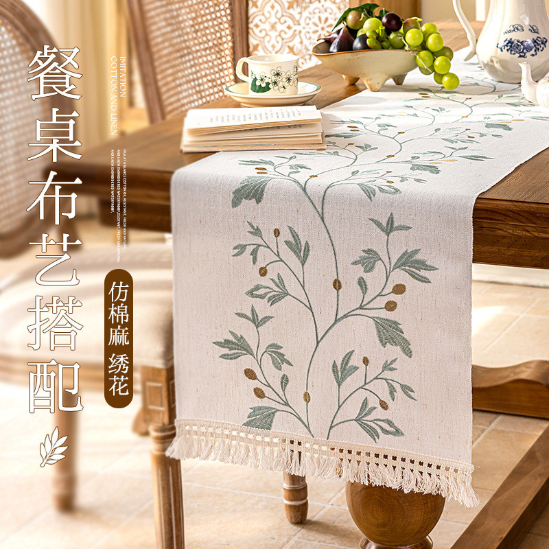ผ้าคลุมโต๊ะน้ำชาสไตล์บ้านใหม่ ทำจากผ้าฝ้ายและลินินลายตาราง ขนาดยาวสำหรับครัวเรือน มาพร้อมงานปักประณีตเพื่อความหรูหรา
