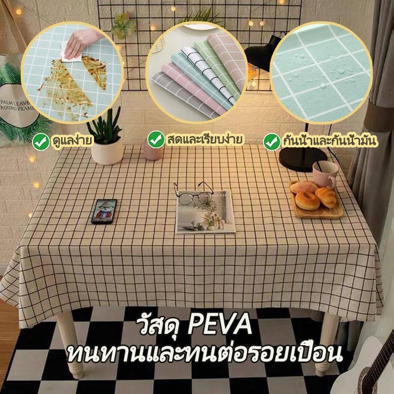 ผ้าคลุมโต๊ะ ผ้าปูโต๊ะ สี่เหลี่ยม ลายตาราง กันน้ำ มี 3 ขนาด#C056