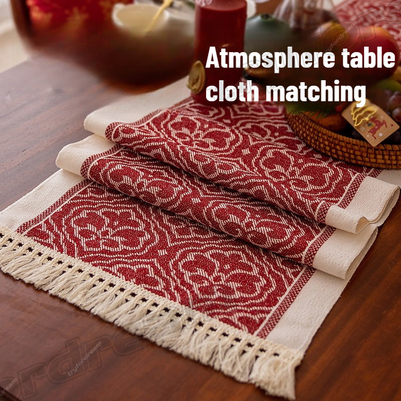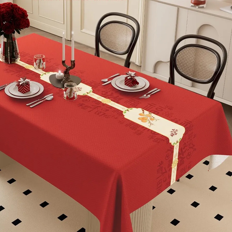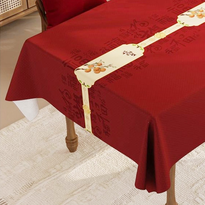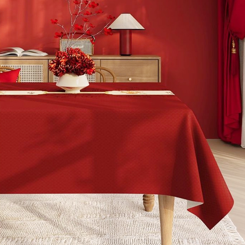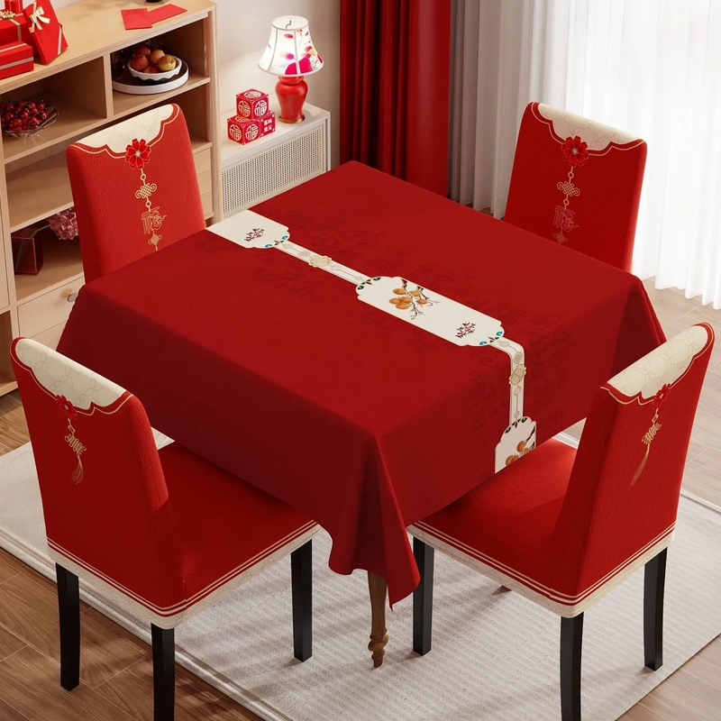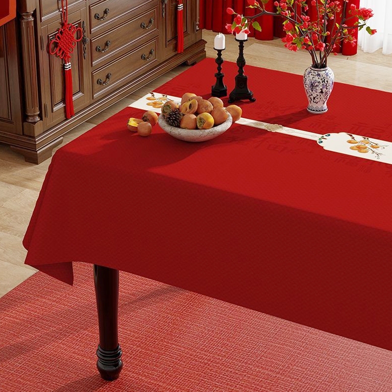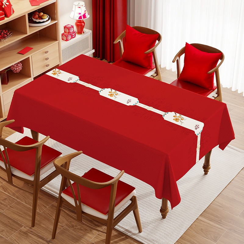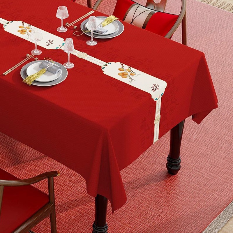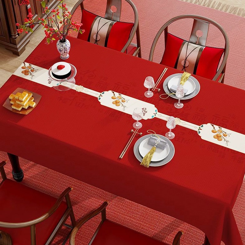 ผ้าคลุมโต๊ะงานแต่งงานสีแดงใหม่ปี ลวดลายผ้ามงคล สำหรับโต๊ะรับแขกและโต๊ะอาหารรูปสี่เหลี่ยมผืนผ้า งานพิธีหมั้นและงานแต