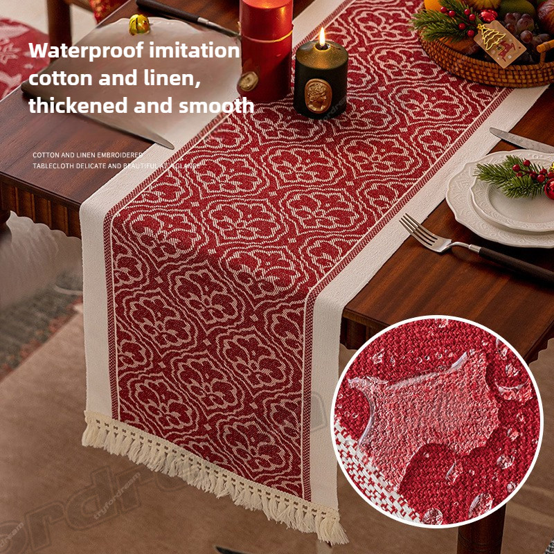 ผ้ากันน้ําและผ้าปูโต๊ะลินินสีแดง สำหรับตกแต่งโต๊ะกาแฟและป้องกันการรั่วไหล