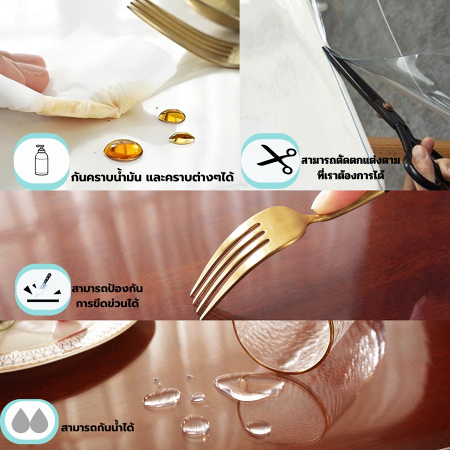 ผ้าคลุมโต๊ะ เสื่อปูโต๊ะ รองโต๊ะ แบบใส ไม่มีกลิ่น PVC กันน้ำมัน กันความร้อน ทนทาน ทำความสะอาดง่าย วัสดุเกรดอาหาร