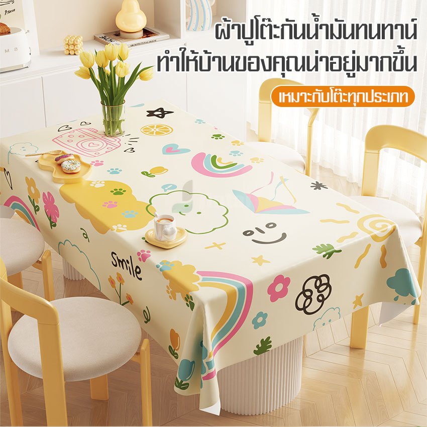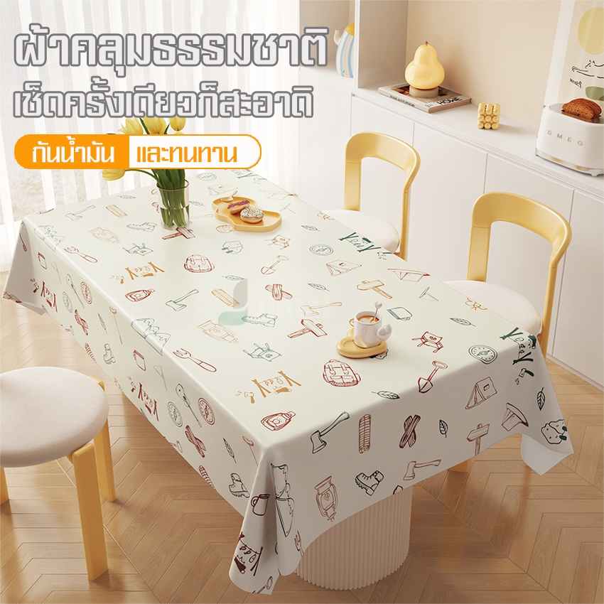 ผ้าคลุมโต๊ะอเนกประสงค์ สำหรับโต๊ะอาหาร 4-8 ที่นั่ง วัสดุ PVC กันน้ำ ใช้งานง่าย กันเปื้อน ทำความสะอาดง่าย พร้อมส่งจากไทย
