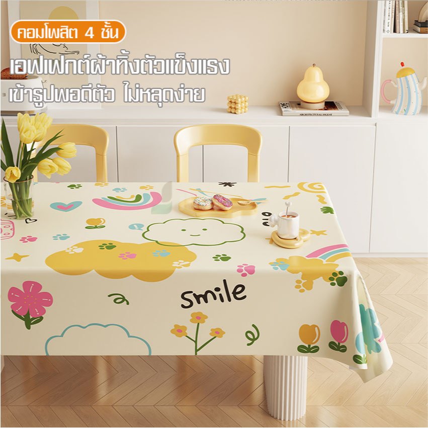 ผ้าคลุมโต๊ะกันน้ำ กันน้ำมัน ไม่ต้องซัก ทนความร้อน สำหรับโต๊ะสี่เหลี่ยมแบบมีสไตล์ ระดับพรีเมียม