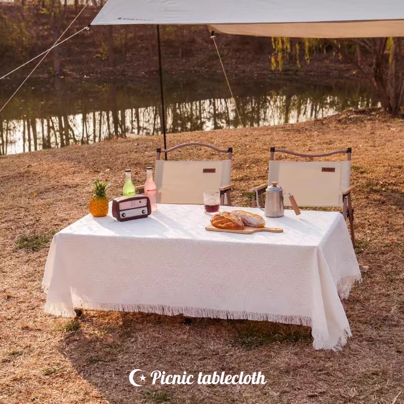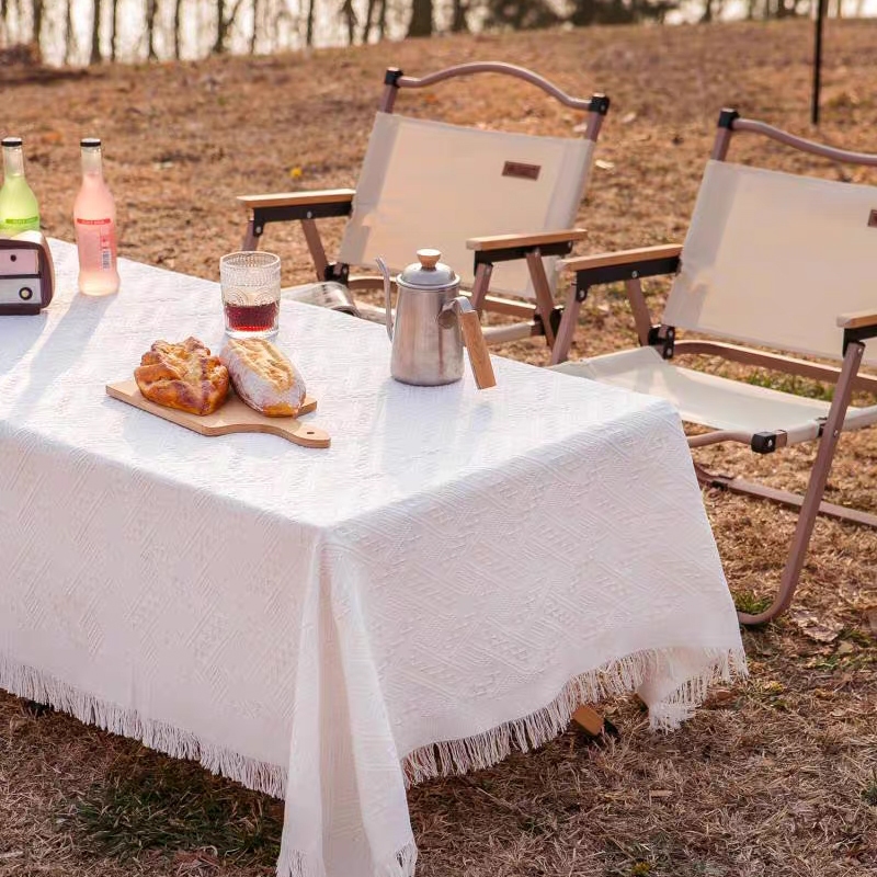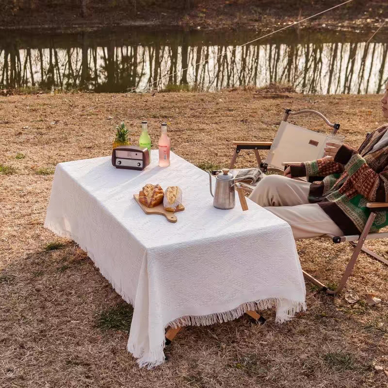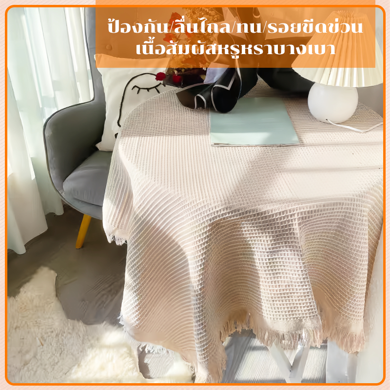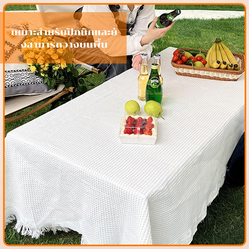 ผ้าปูโต๊ะ ปิคนิค ผ้าคลุมโต๊ะ ผ้าปูโต๊ะกลางแจ้ง ลายวาฟเฟิล สวยมาก ผ้าคอตตอนลินิน outdoor แคมป์ปิ้ง