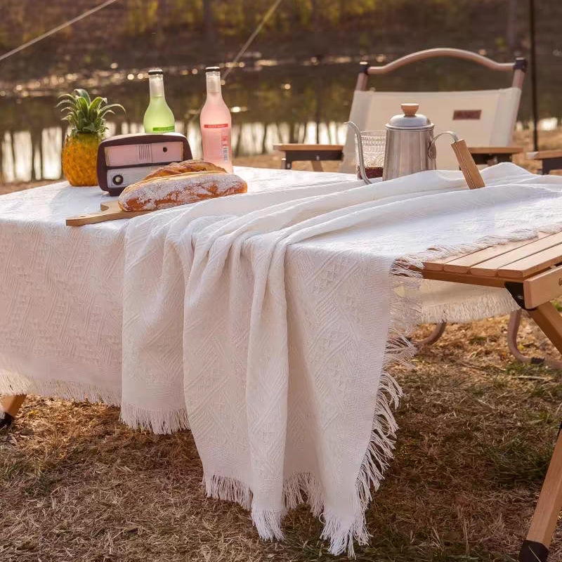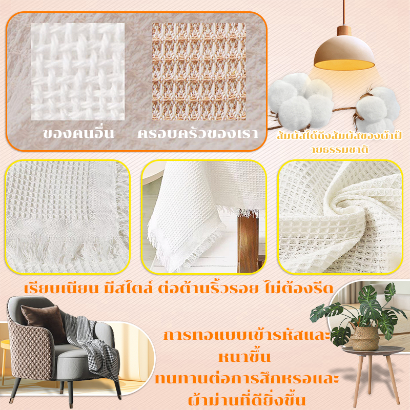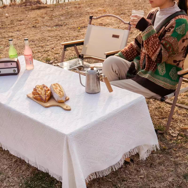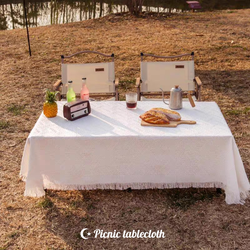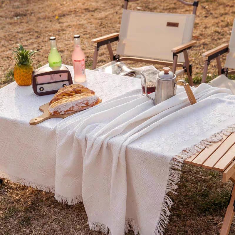 ผ้าปูโต๊ะ ปิคนิค ผ้าคลุมโต๊ะ ผ้าปูโต๊ะกลางแจ้ง ลายวาฟเฟิล สวยมาก ผ้าคอตตอนลินิน outdoor แคมป์ปิ้ง
