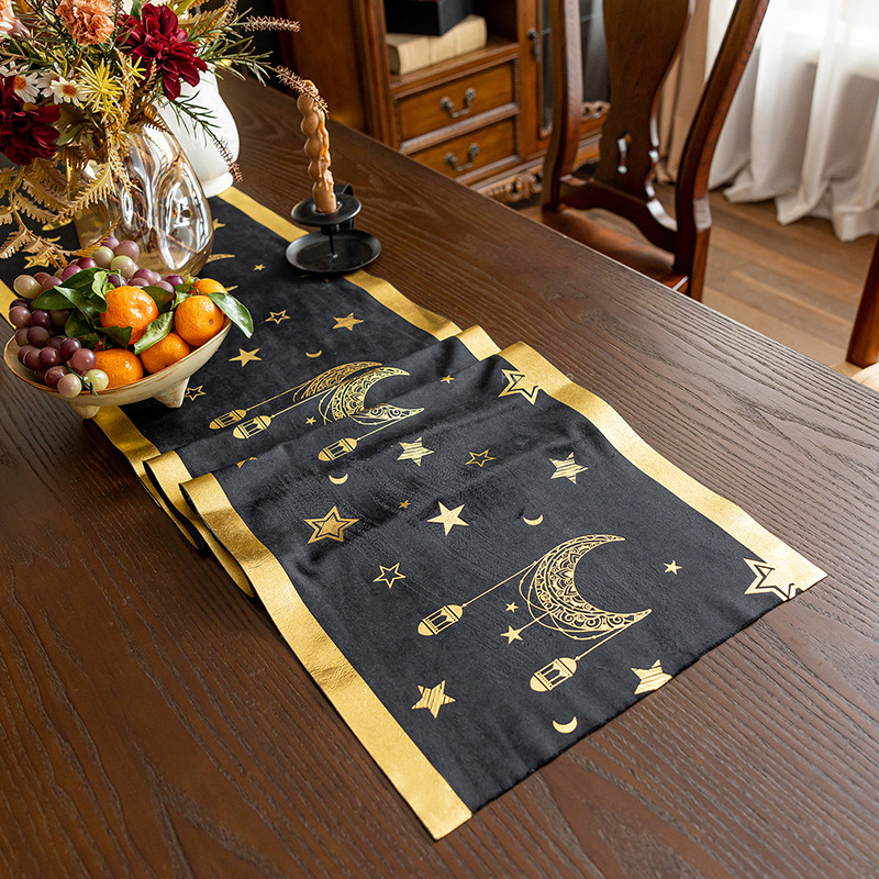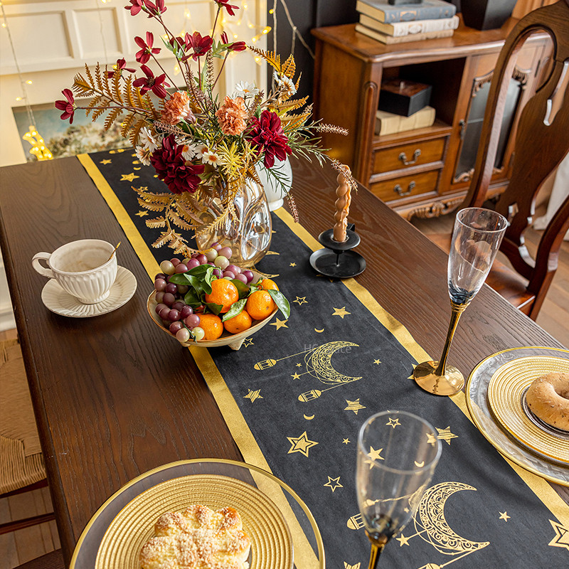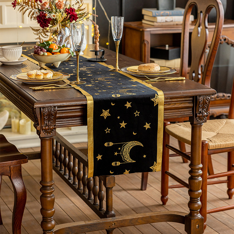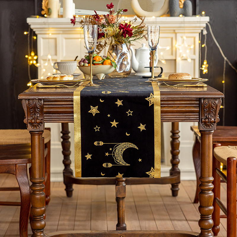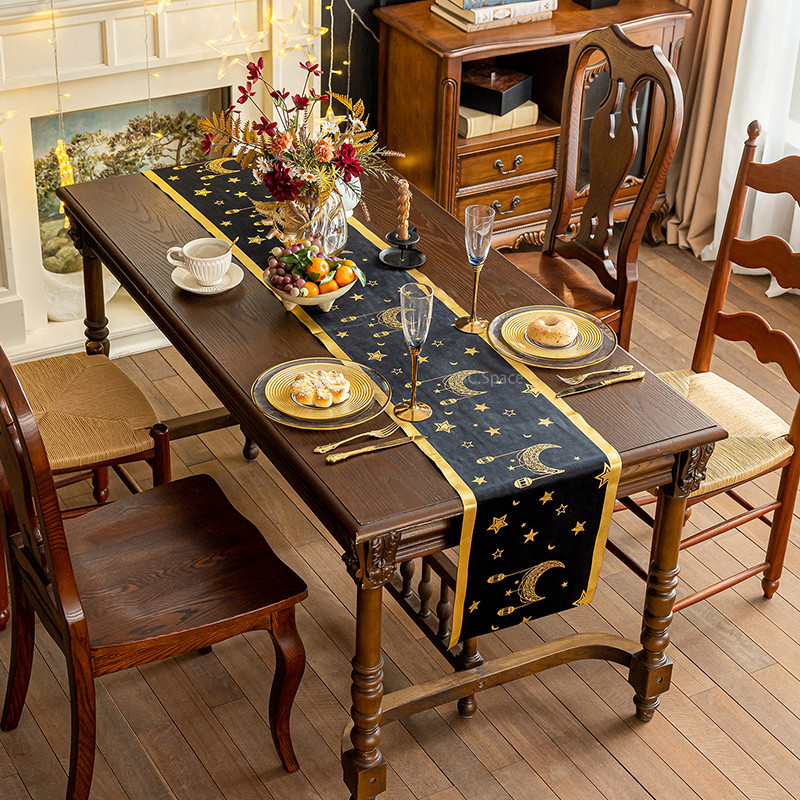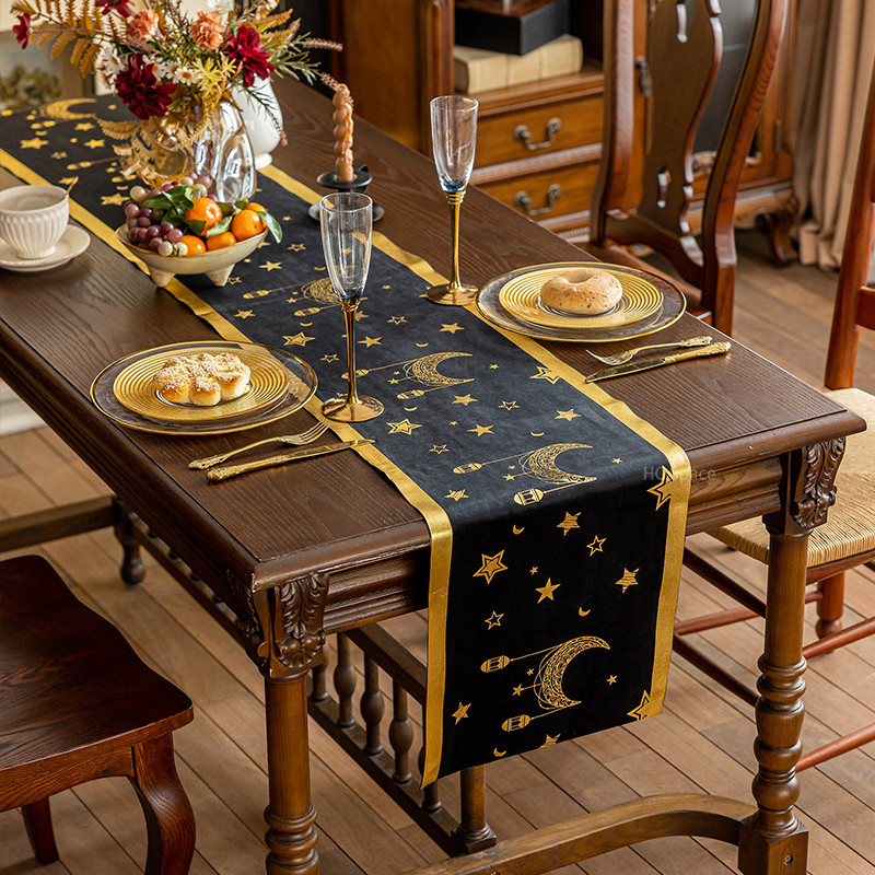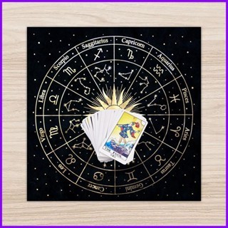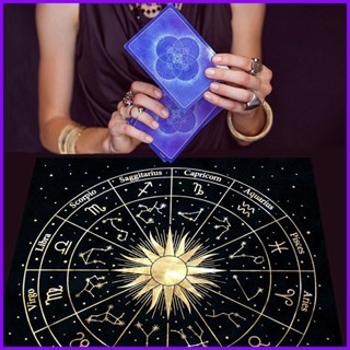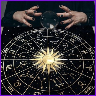 ผ้าปูโต๊ะ กํามะหยี่สีดําลายไพ่ทาโรต์สีดําเหมาะสําหรับตกแต่งบ้าน