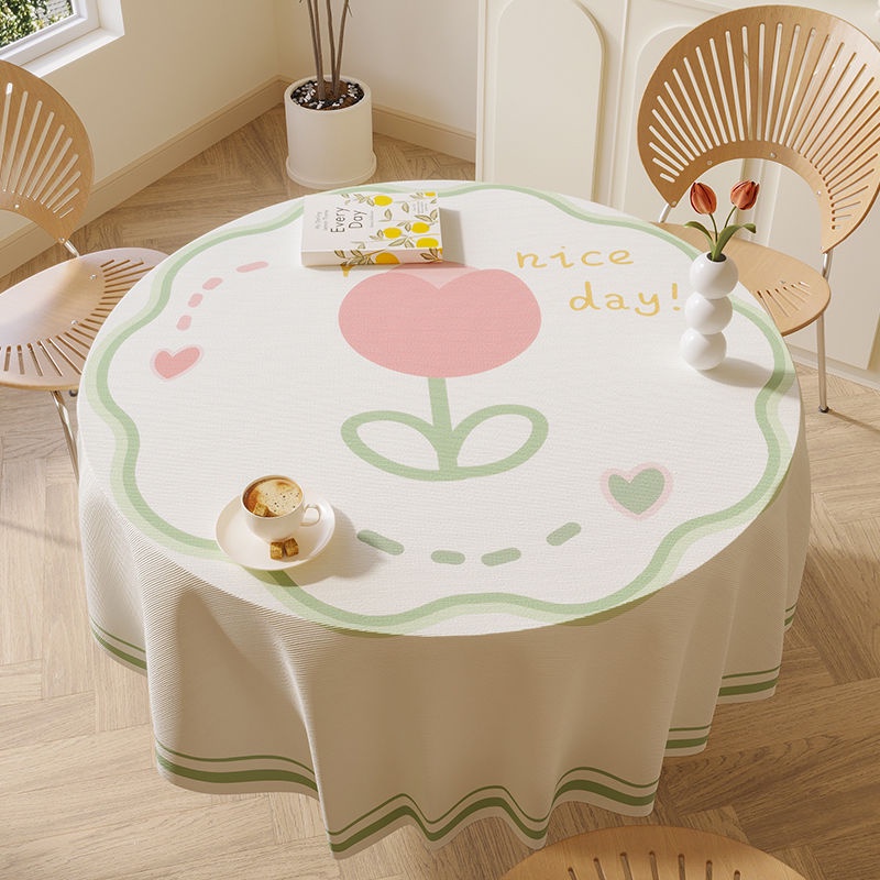 ผ้าปูโต๊ะ ทรงกลม กันน้ํา กันเปื้อน กันลื่น พร้อมขอบยางยืด SHOPCYC0995