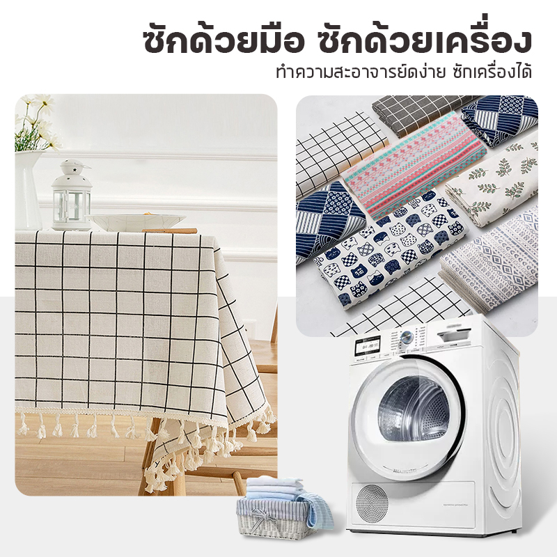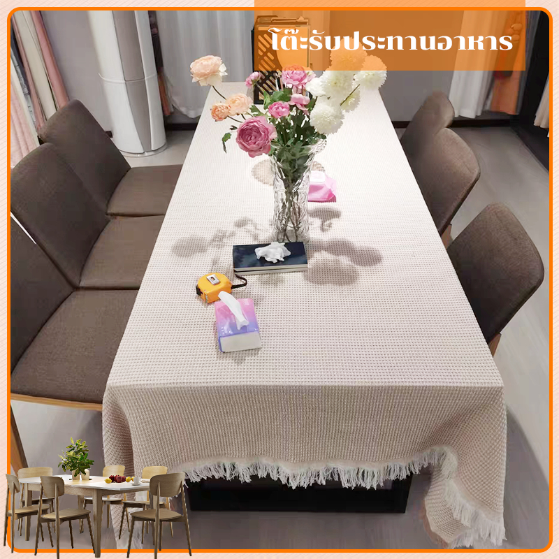 ผ้าปูโต๊ะ กันเปื้อนและฝุ่น ผ้าฝ้าย สไตล์โดปามีน หลายสีให้เลือก ใช้ตกแต่งโต๊ะอาหาร