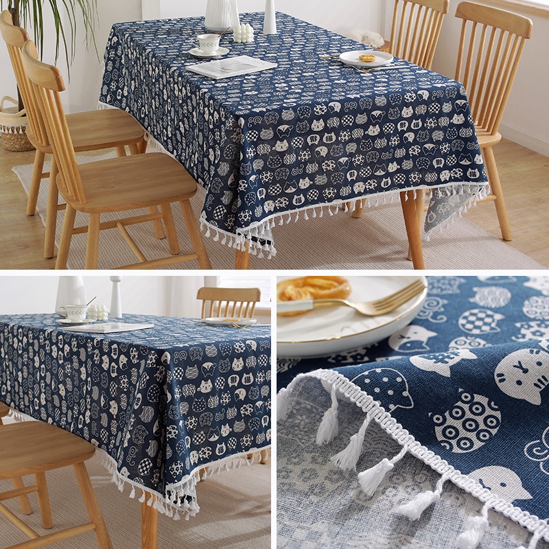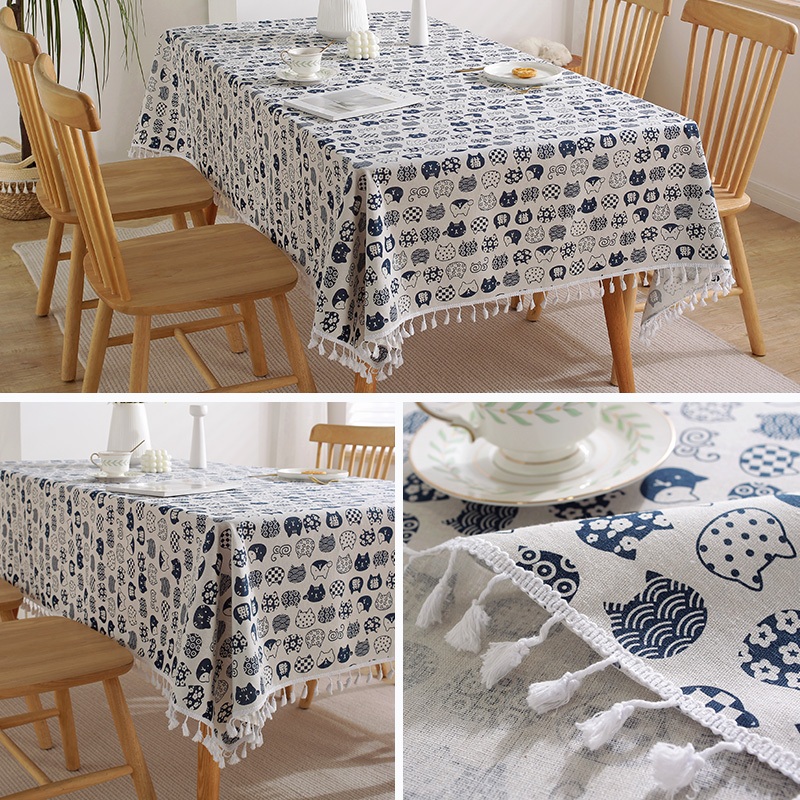 ผ้าปูโต๊ะ ?ผ้าฝ้ายลินิน 90*150/150*220cm สไตล์ญี่ปุ่น ตกแต่งบ้าน ผ้าคลุมโต๊ะ/ตู้เย็น/ผ้าไมโครเวฟ