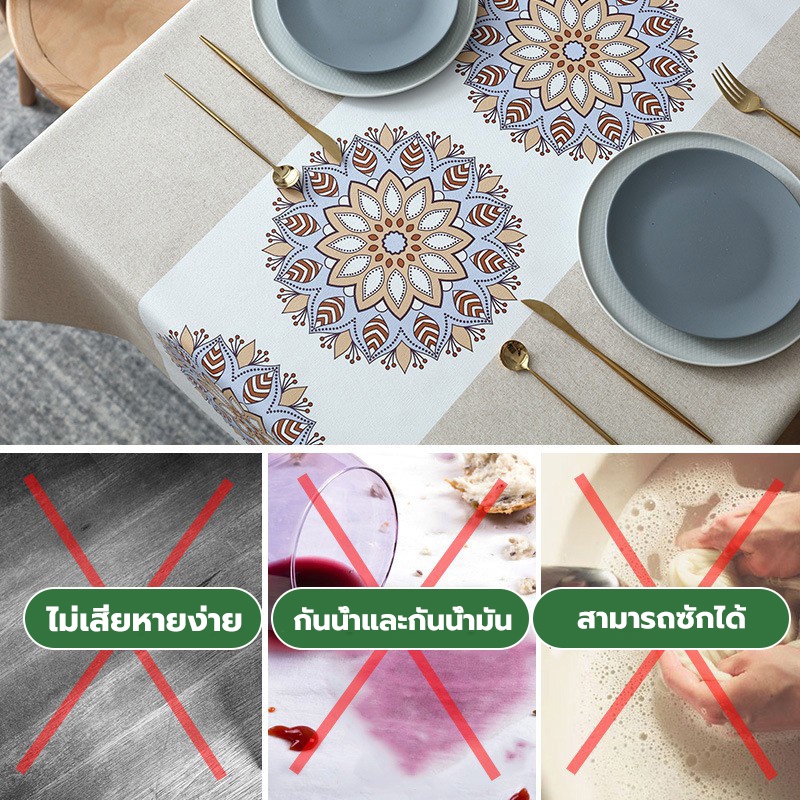 ผ้าปูโต๊ะ PVC กันน้ำ กันคราบน้ำมัน ทนความร้อน ทำความสะอาดง่าย สไตล์มินิมอล