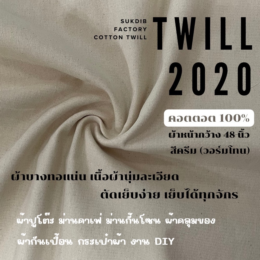 ผ้าดิบลายสอง ผ้าทวิล TWILL คุณภาพดี ราคาถูกใช้ทำม่านคาเฟ่ กระเป๋า ผ้าปูโต๊ะ