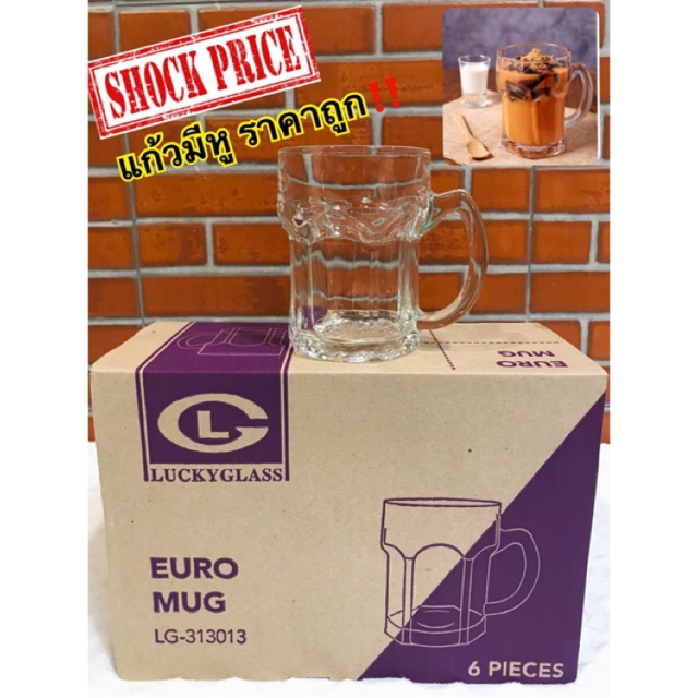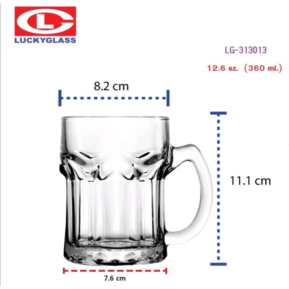 ?(6ใบ) LG-313013 : 360ml. แก้ว ใส่นม แก้วมีหู ใส ใส่น้ำดื่ม ใส่เบียร์ ใส่เหล้า 12.6oz. Lucky glass