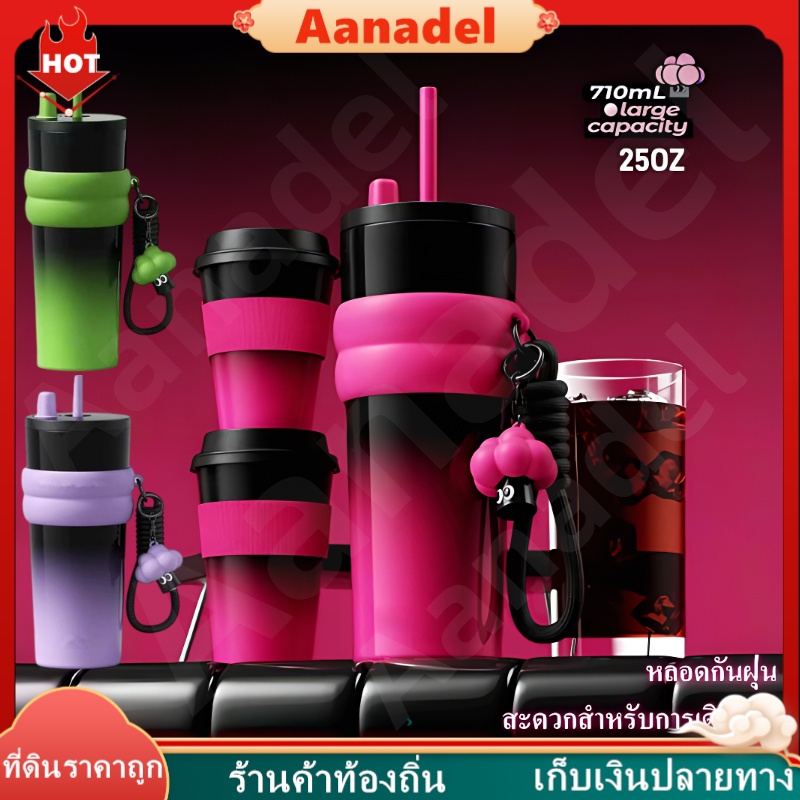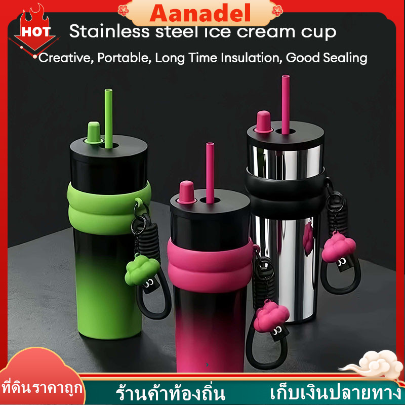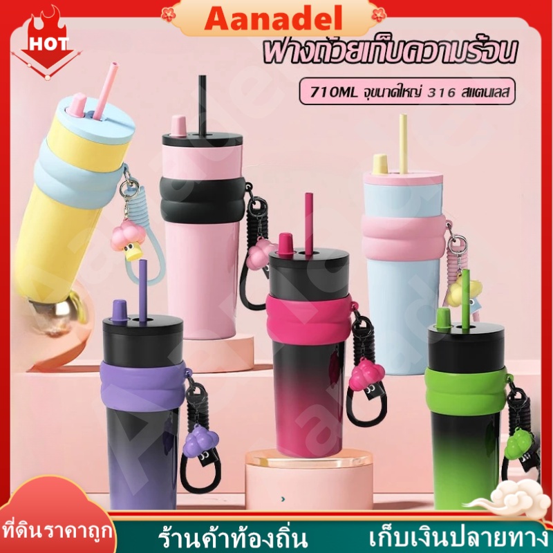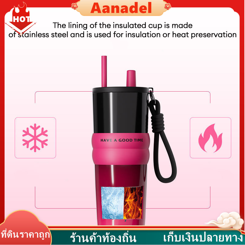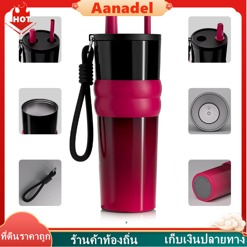??แก้วนํ้าเก็บความเย็น(26oz) แก้วกาแฟสแตนเลสซับเซรามิกพร้อมฝาปิดขวดสูญญากาศสามารถเก็บความร้อนและความเย็น ถ้วยฟาง แก้วน้ำ