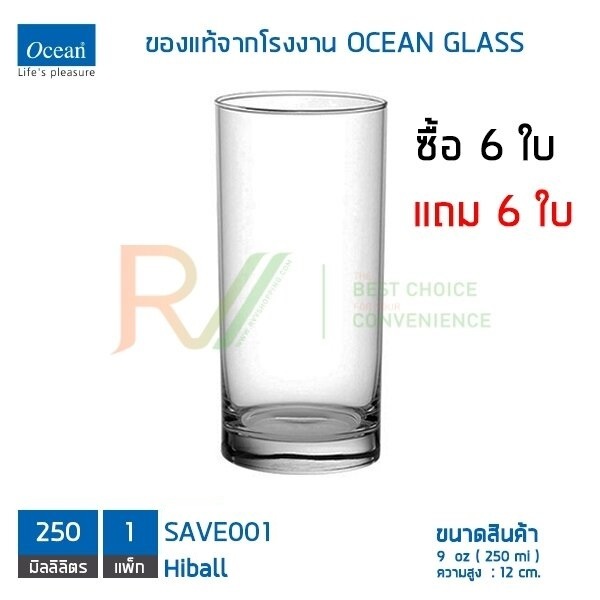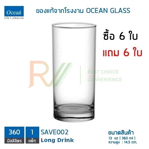 -1 ออเดอร์/สูงสุด 3 แพ็ก- แก้ว SAVE Ocean 001 9 oz. 250 ml. /002 13 Oz. 360 ml. Ocean – 6 แถม 6