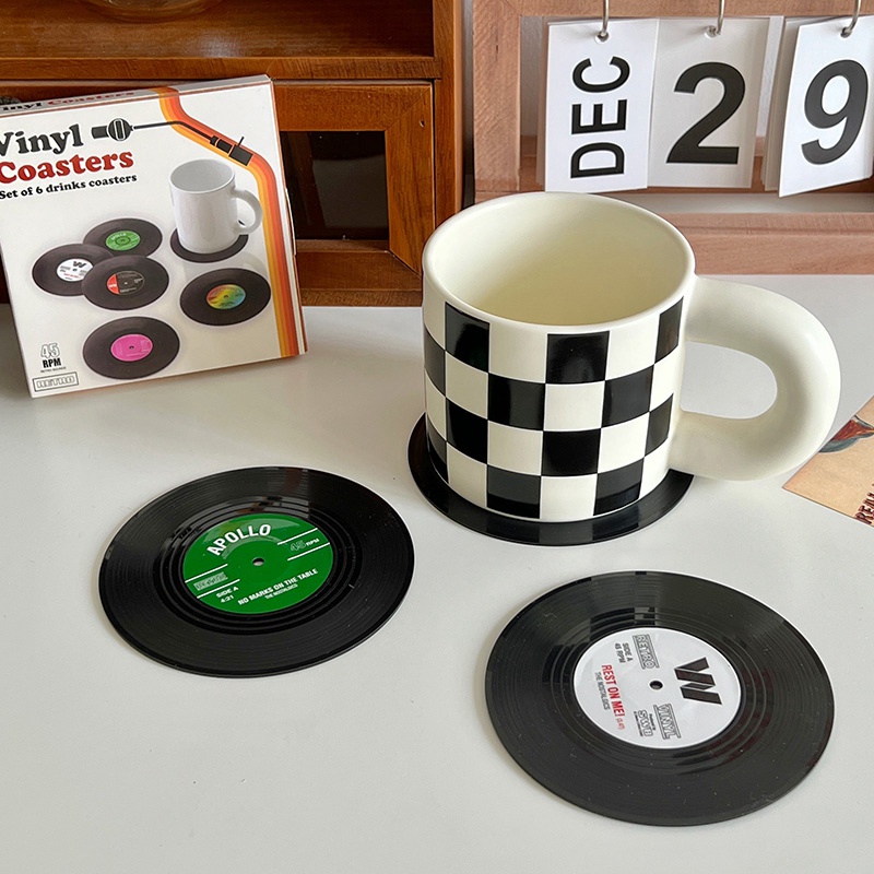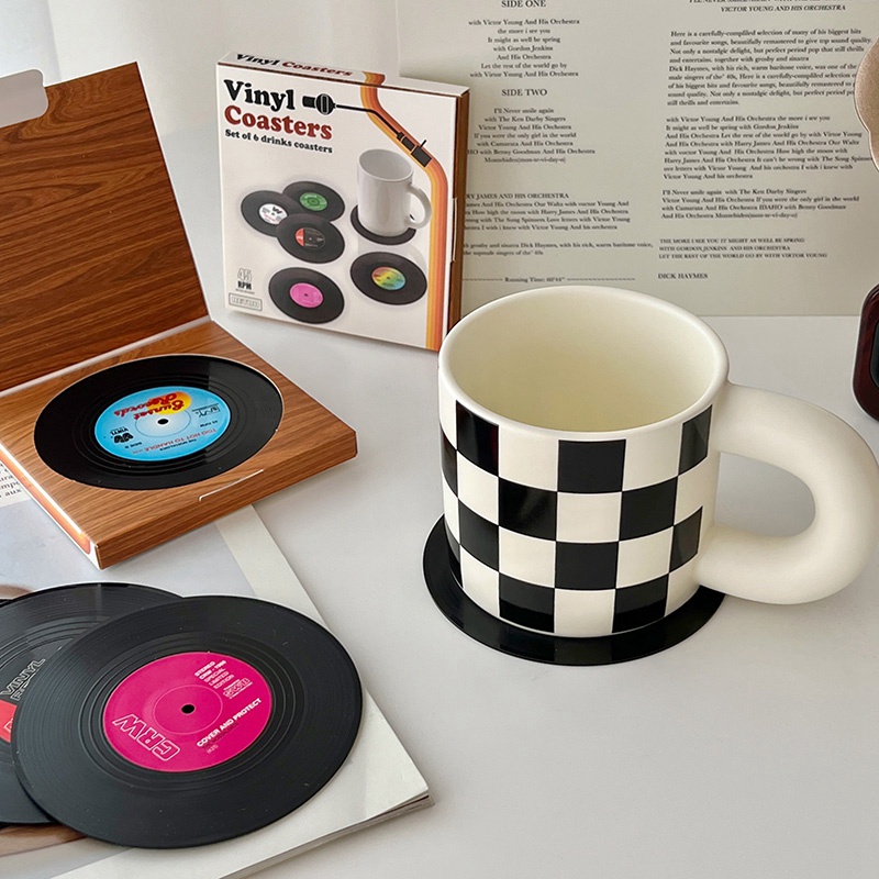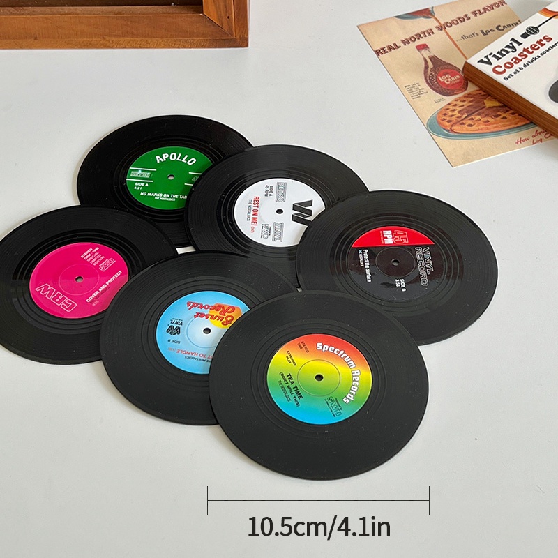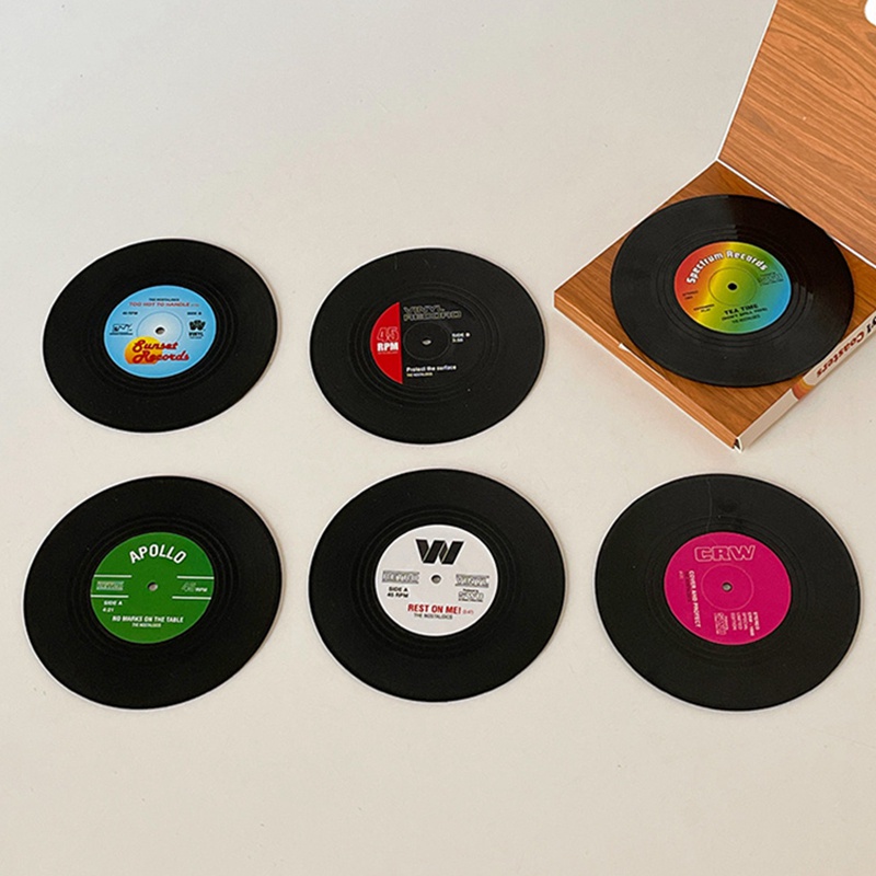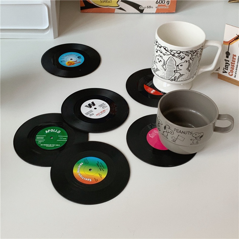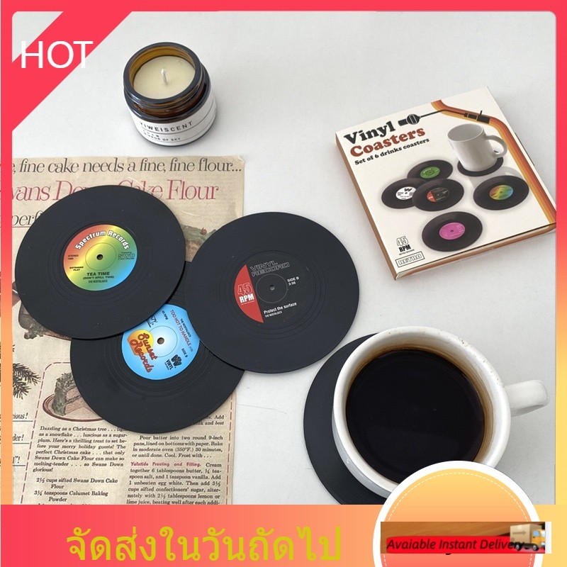 2/4/6 ชิ้น / เซต ที่รองแก้วบันทึกเสียง ย้อนยุค กันลื่น แผ่นรองแก้ว พร็อพถ่ายภาพ โต๊ะอาหารค่ํา