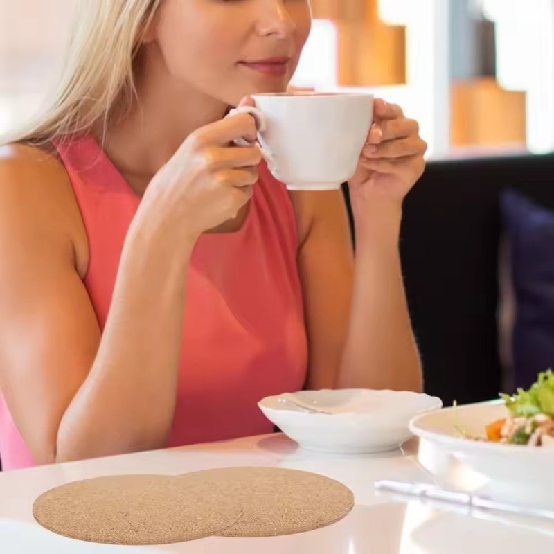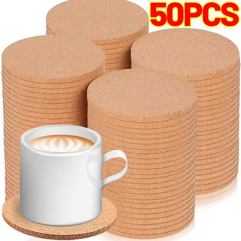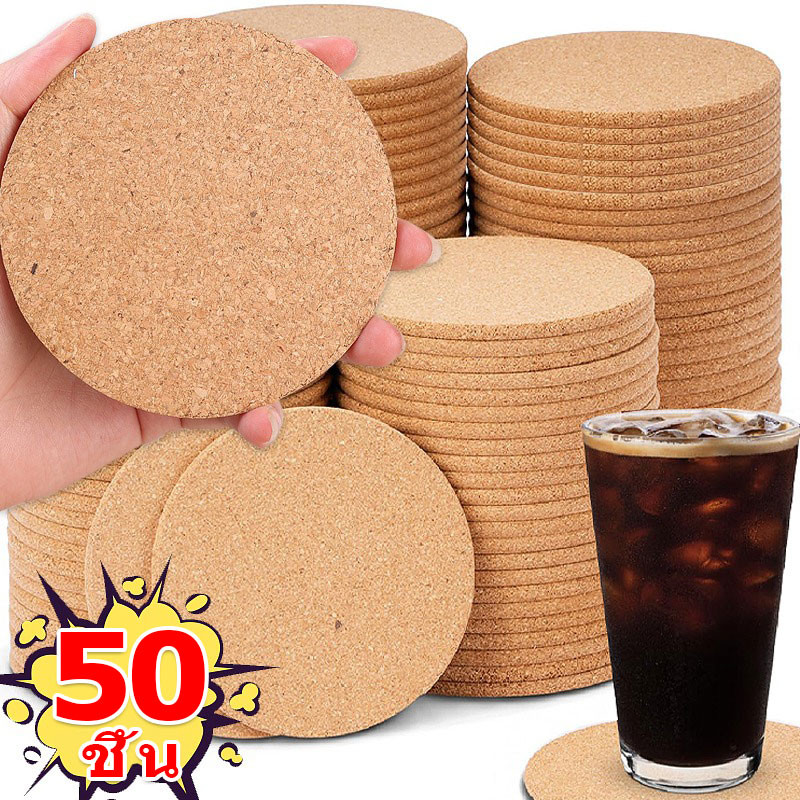 10/30/50 ชิ้น ที่รองแก้วไม้ก๊อกกันลื่น / แผ่นรองแก้วชากาแฟทรงกลม / แผ่นรองโต๊ะฉนวนกันความร้อน