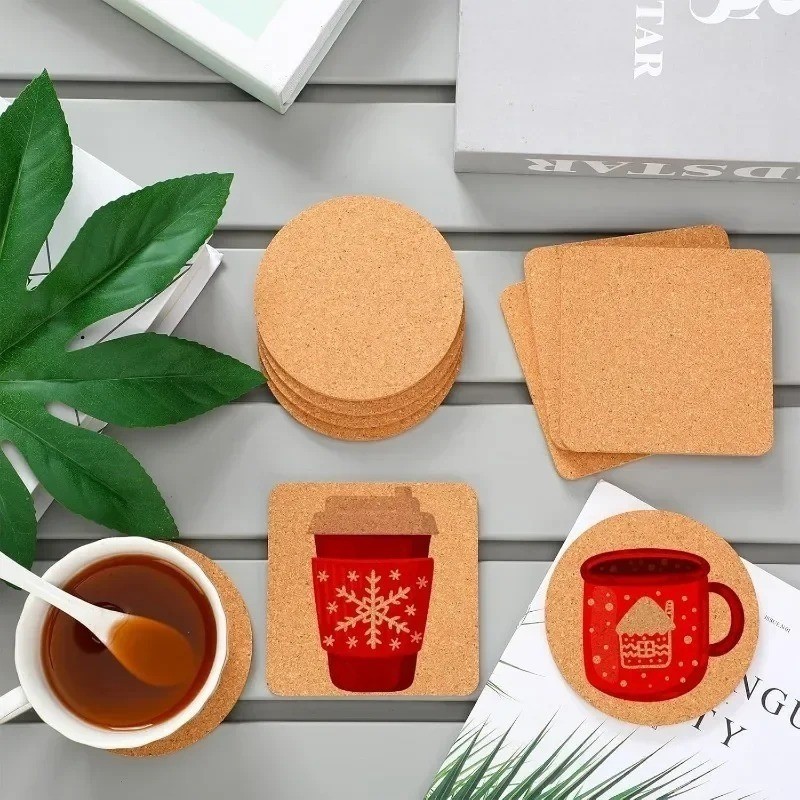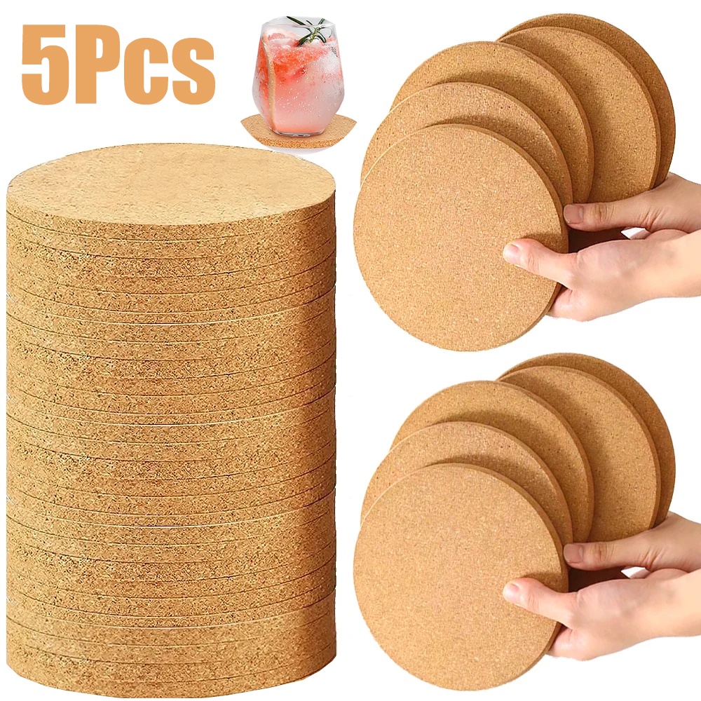 1/5 ชิ้น ทรงกลม สี่เหลี่ยม ทนความร้อน ที่รองแก้ว ไม้ก๊อก / DIY ทนทาน บนโต๊ะอาหาร ตกแต่ง กันลื่น ถ้วย แก้ว เสื่อ