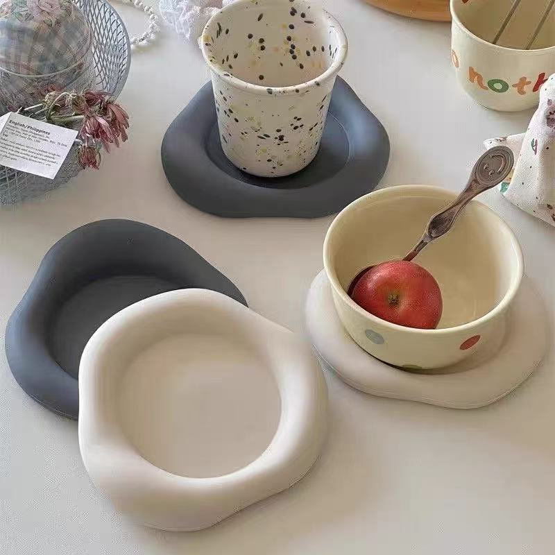 ☕ สไตล์นอร์ดิก ที่รองแก้วรูปเมฆ 3 มิติ ไม่สม่ำเสมอ ที่รองแก้วซิลิโคนกันความร้อน เว้าและนูนสามมิติ กันลื่น ทนอุณหภูมิสูง