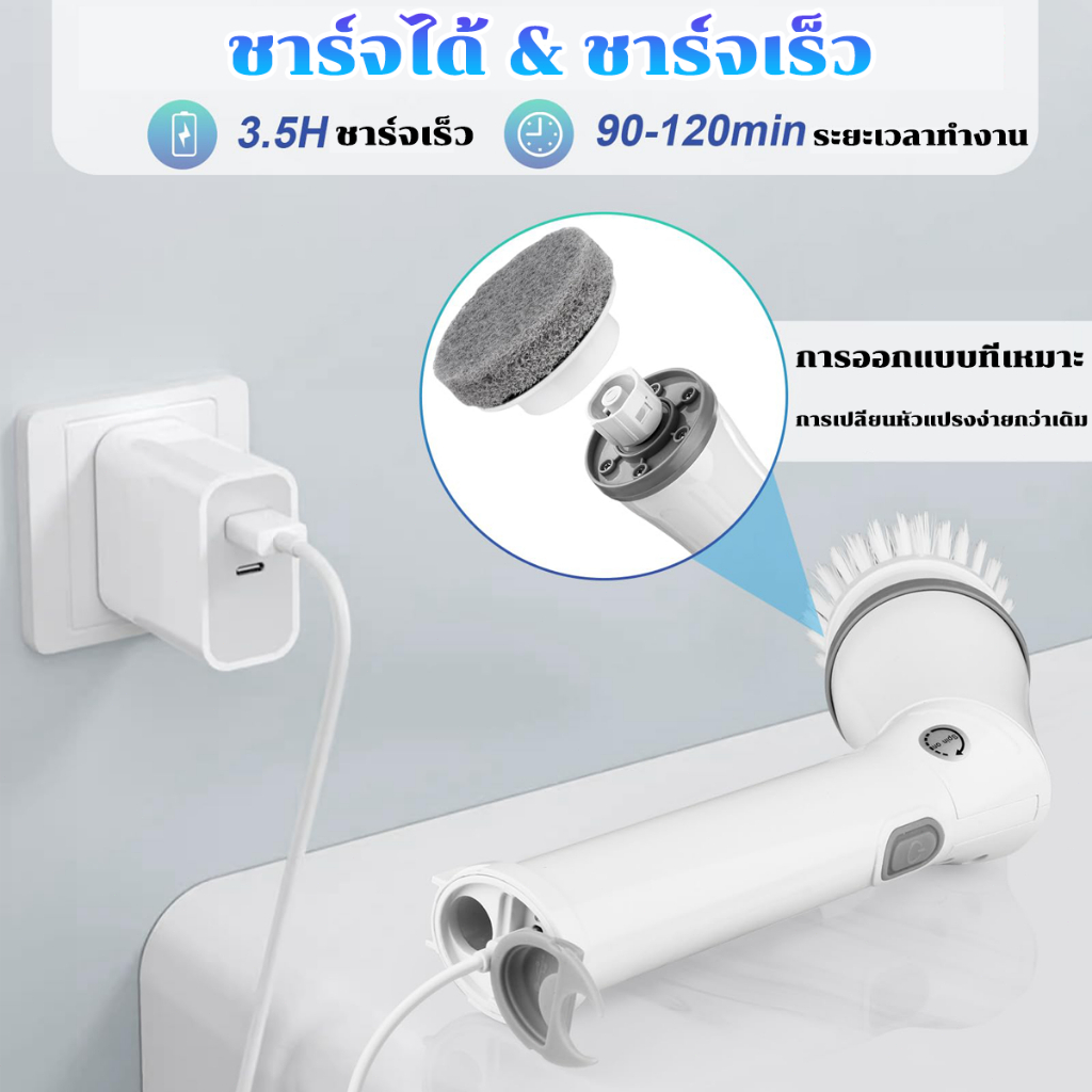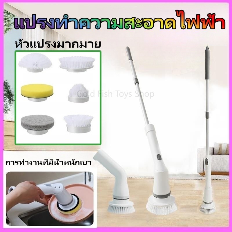 ?จัดส่งเร็ว?แปรงทำความสะอาด แปรงทำความสะอาดไฟฟ้า หัวแปรงเปลี่ยน 6 หัว ขัดพื้น ห้องน้ำ แก้ว ชักโครก แปรงขัดห้องน้ําไฟฟ้า