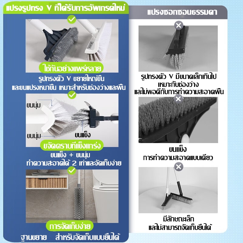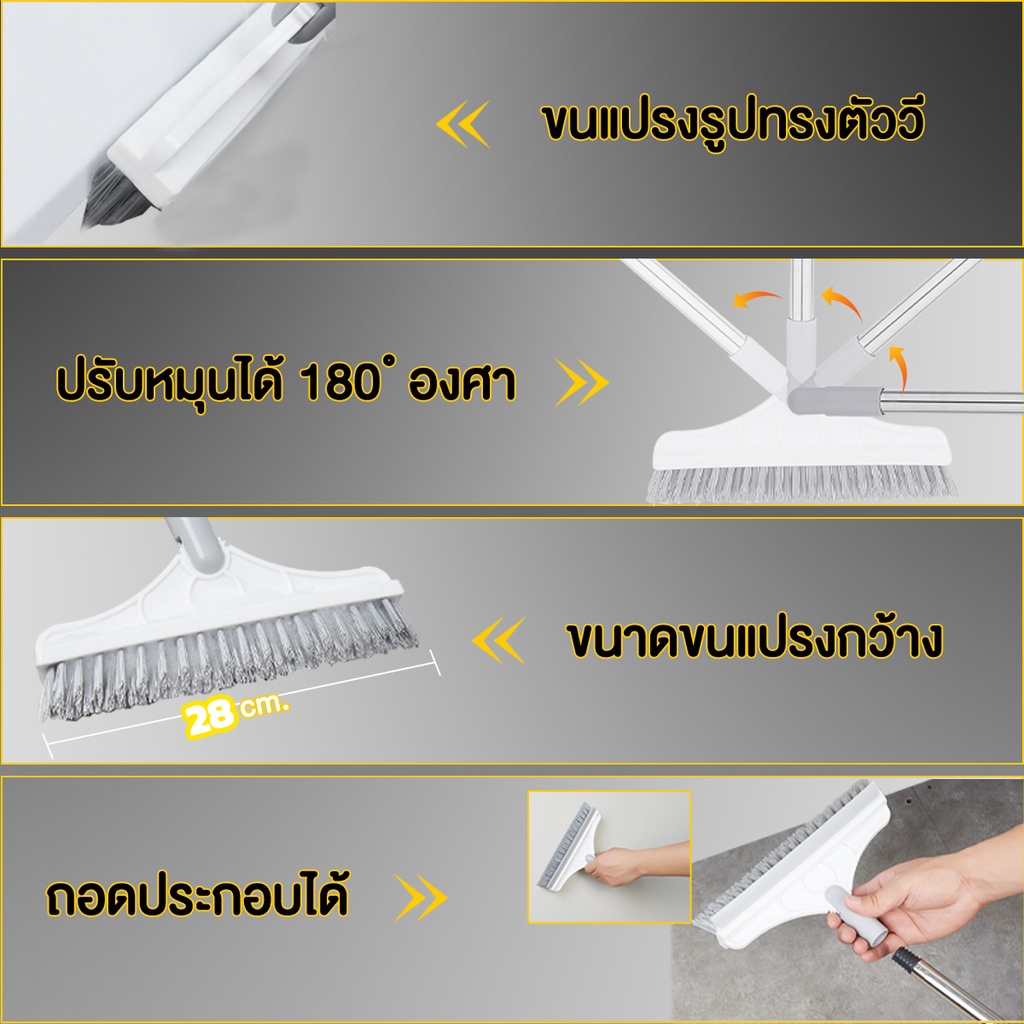 ?ขัดได้ทุกซอกทุกมุม?แปรงขัดพื้น 2IN1 หัวแปรงตัวV พร้อมที่รีดน้ำ ถูพื้น ทำความสะอาด มีที่กวาดน้ำ ด้ามยาวแข็งแรงทนทาน