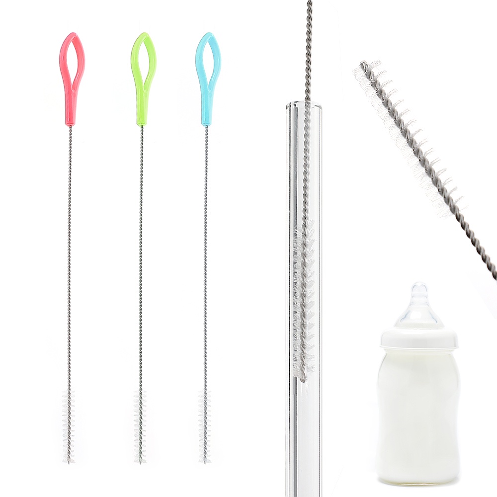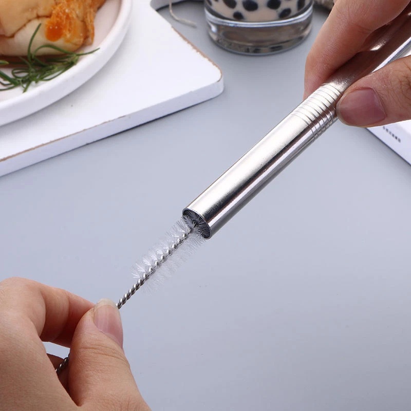 แปรงทําความสะอาดหลอด ขวดน้ํา หลอดดูดน้ํา แบบเกลียว ไนล่อน สเตนเลส ใช้ซ้ําได้ สุ่มสี