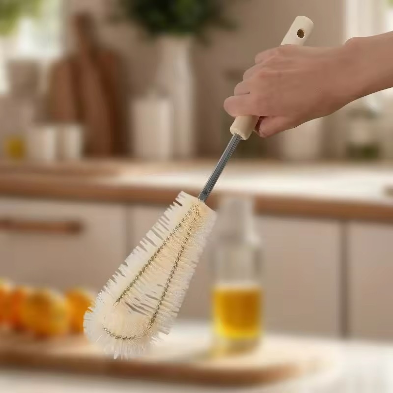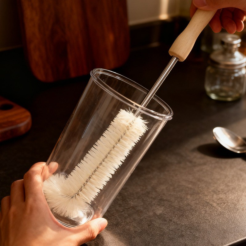 แปรงทําความสะอาดสําหรับเครื่องทําลายผนังและนมถั่วเหลือง, ขนแปรงไนลอนด้ามยาวสําหรับทําความสะอาดอย่างล้ําลึก, มี 2 ขนาด, การออกแบบวัสดุไม