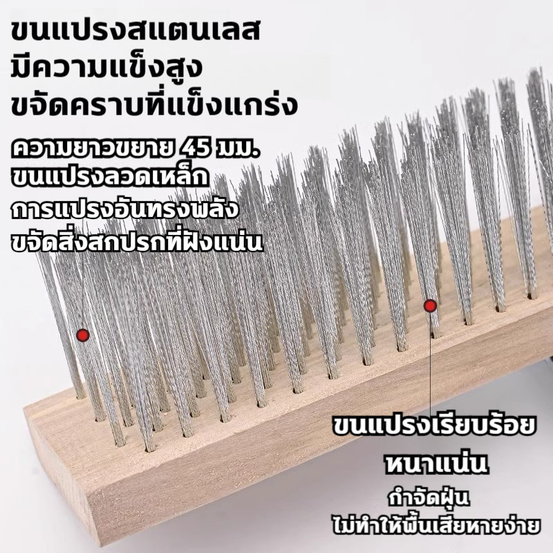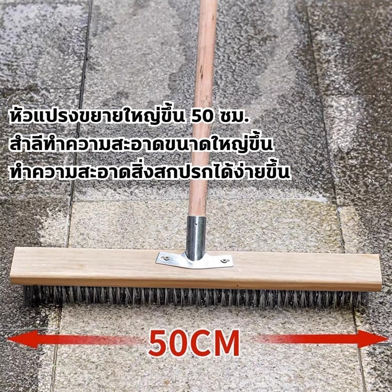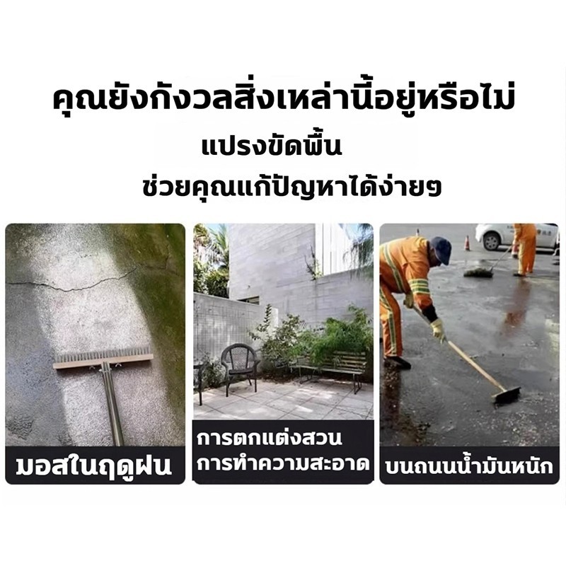 แปรงทําความสะอาดพื้นแปรงลวดเหล็กแปรงลวดสแตนเลสด้ามยาวทนทานเหมาะสําหรับทําความสะอาดพื้นกลางแจ้งในร่ม