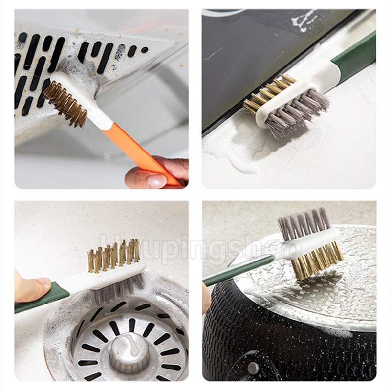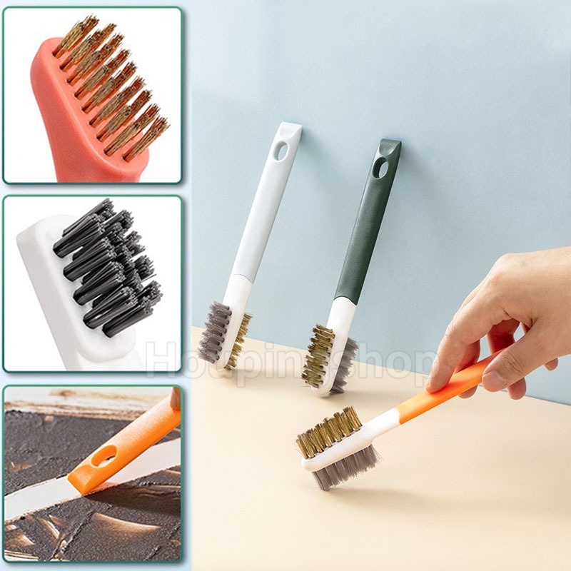 แปรงทำความสะอาดแบบหมุนได้ แปรงทําความสะอาดช่องว่าง 3in1 มีหัวแปรงเล็กขัดช่องว่าง เครื่องมือทำความสะอาดมุมในครัว