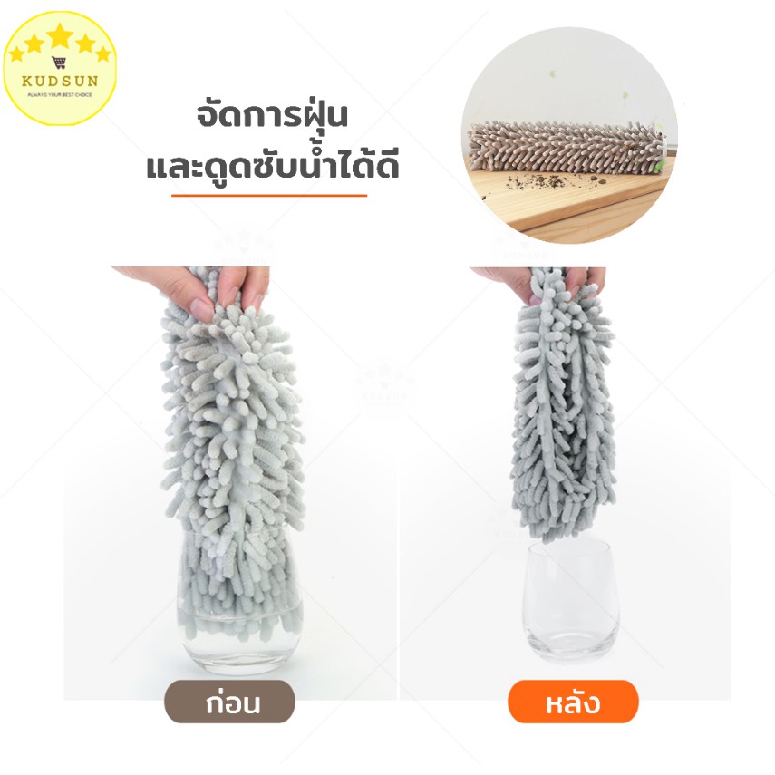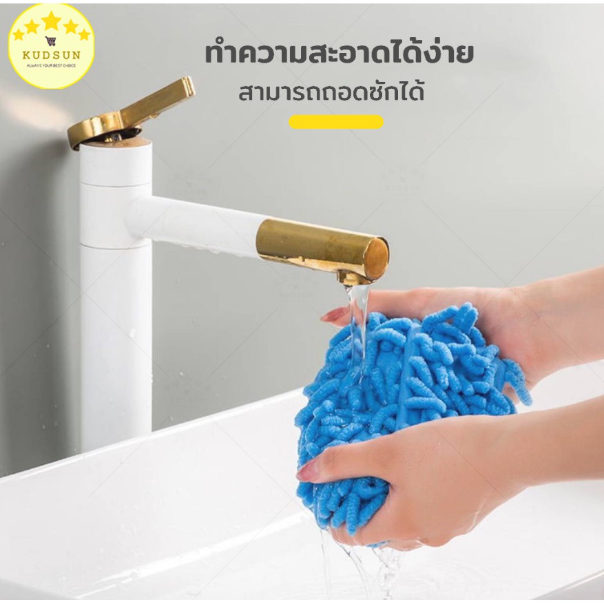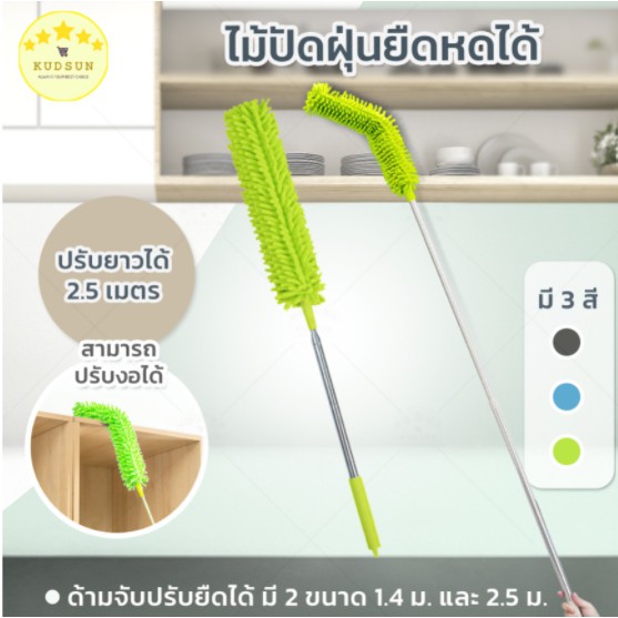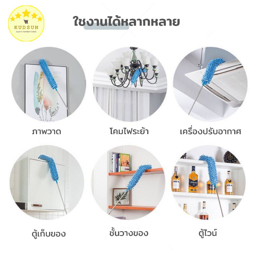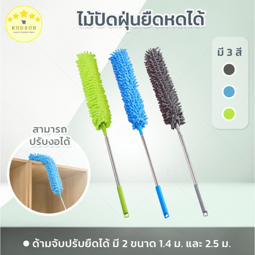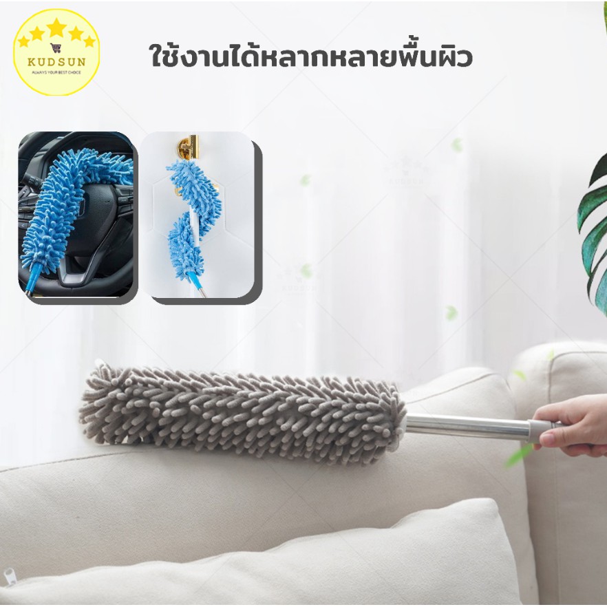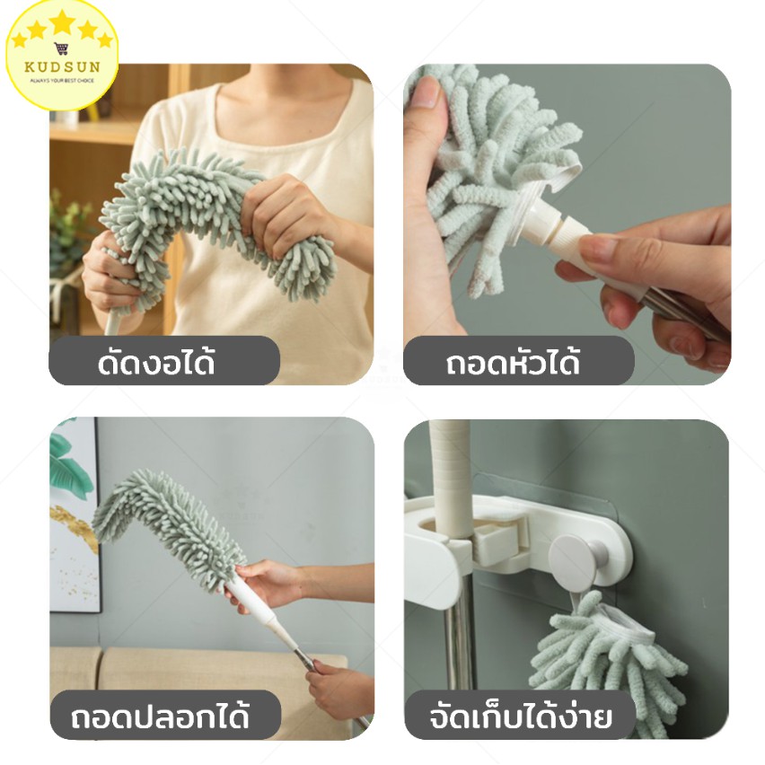 KUDSUN ไม้ปัดฝุ่น ไม้ปัดฝุ่นตัวหนอน ผ้าไมโครไฟเบอร์ ยาว 2.5 เมตร ปรับงอได้ ถอดซักได้ ดึงดูดฝุ่นด้วยไฟฟ้าสถิต ฝุ่นไม่ปลิว
