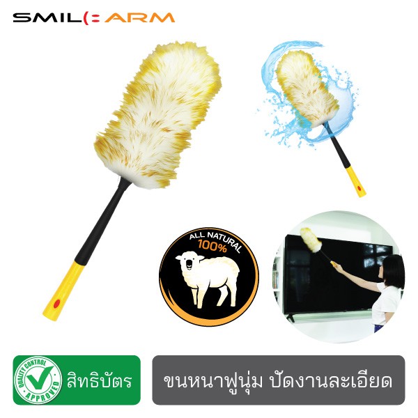 SmileArm® ไม้ปัดฝุ่นขนแกะ ขนแกะแท้100% ปัดฝุ่นชั้นวางของ ปัดฝุ่นโคมไฟระย้า ปัดฝุ่นหน้าจอทีวี ปัดฝุ่นหน้าจอคอม ปัดฝุ่นรถ
