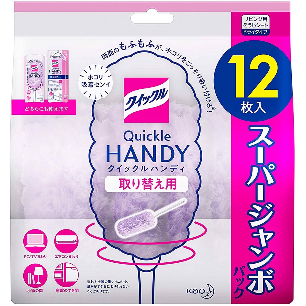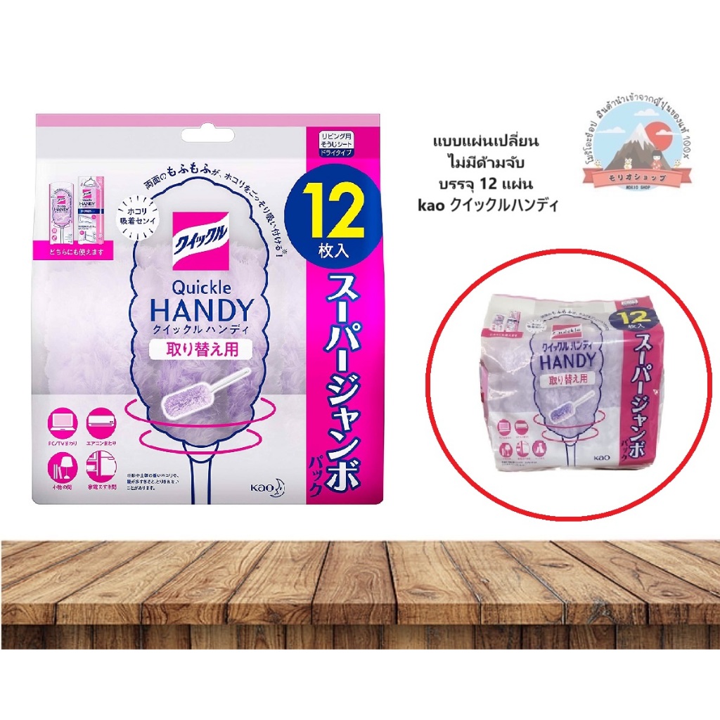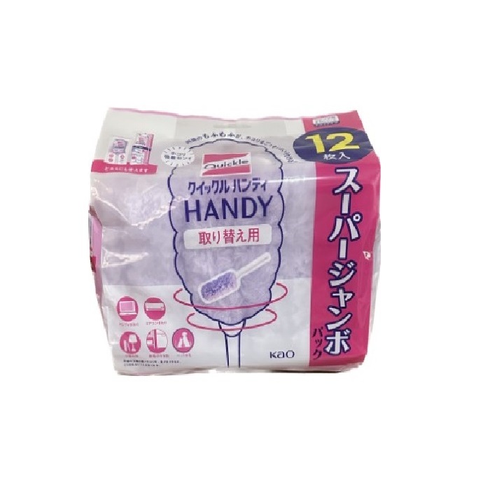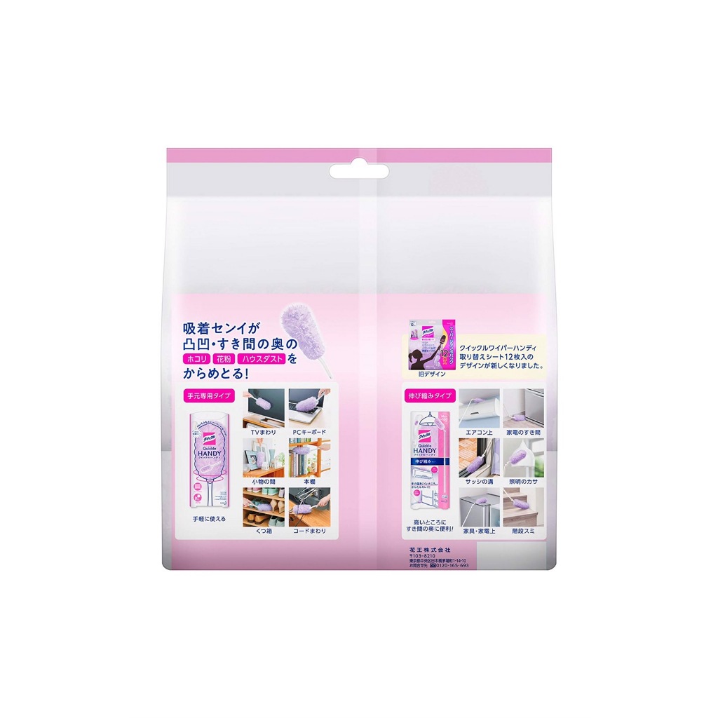 KAO Quickle handy ชนิดแผ่นเปลี่ยน (ไม่มีด้ามจับ) สำหรับ ปัดฝุ่นในบ้าน ( 1 ห่อ มี 12 แผ่น ) クイックルハンディ